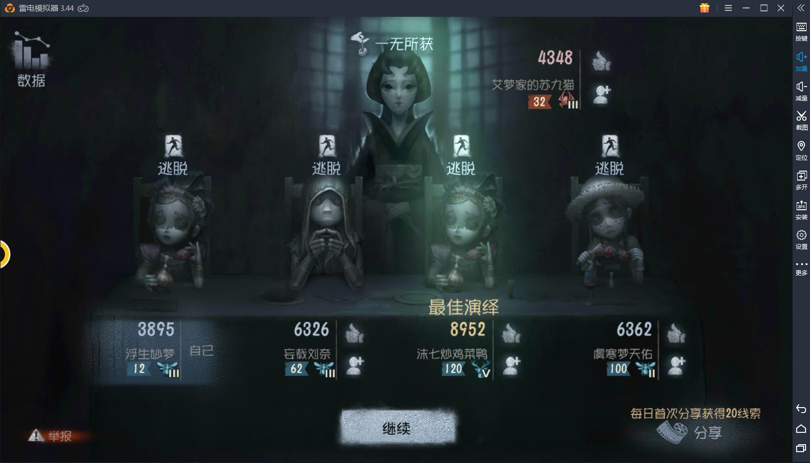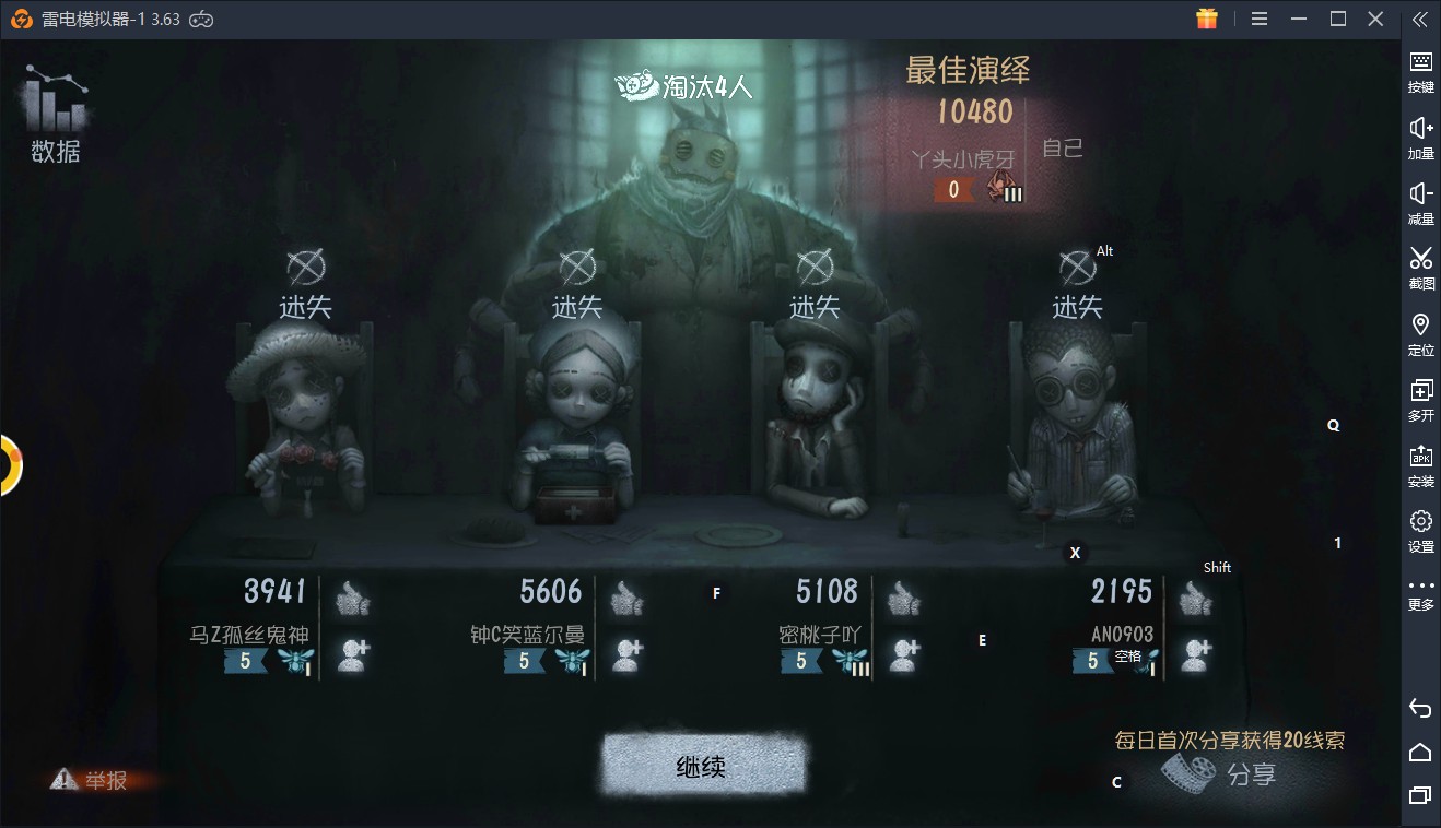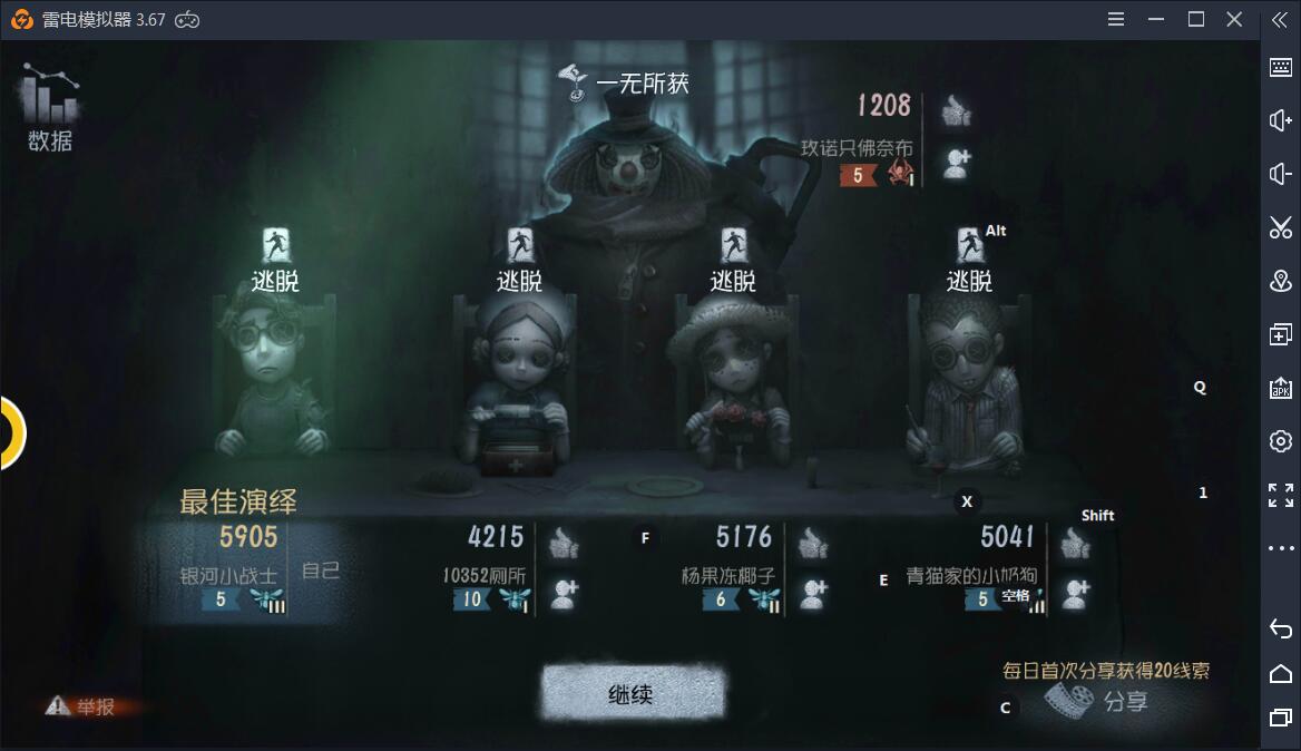 活动期间, 登录雷电渠道《第五人格》,截图任意游戏画面并回复本帖(新手教程之后),即有机会获得奖品!每个账号只有一次获奖机会,获奖名单将在活动结束后公布在雷电论坛。