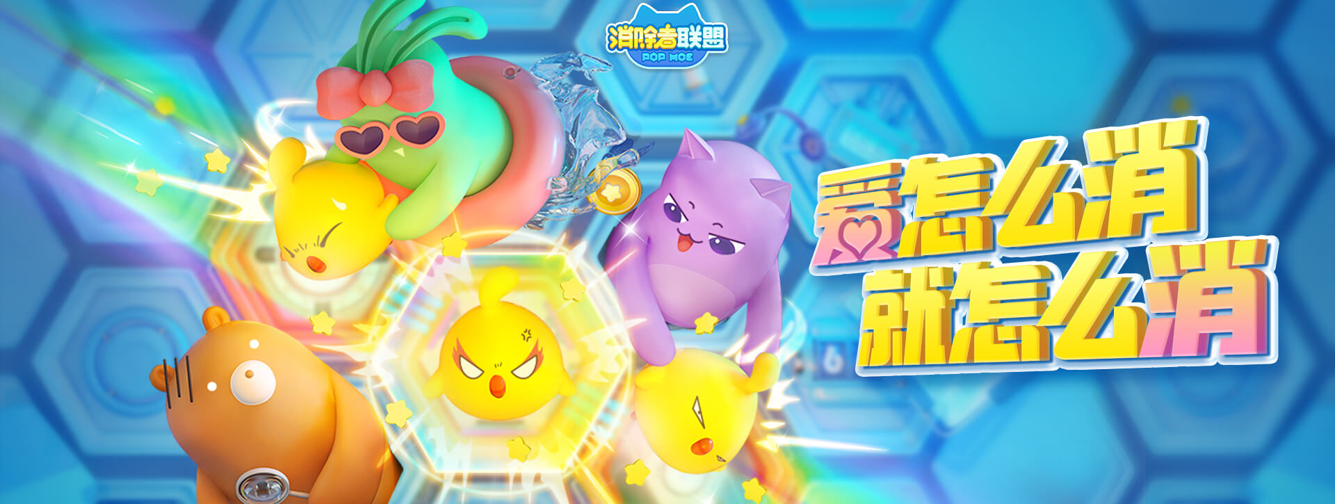 喵星星、果果兔、琦琦熊、黄豆豆——消除联萌将以更加潮流百变的形象,陪伴每一位玩家的冒险旅程