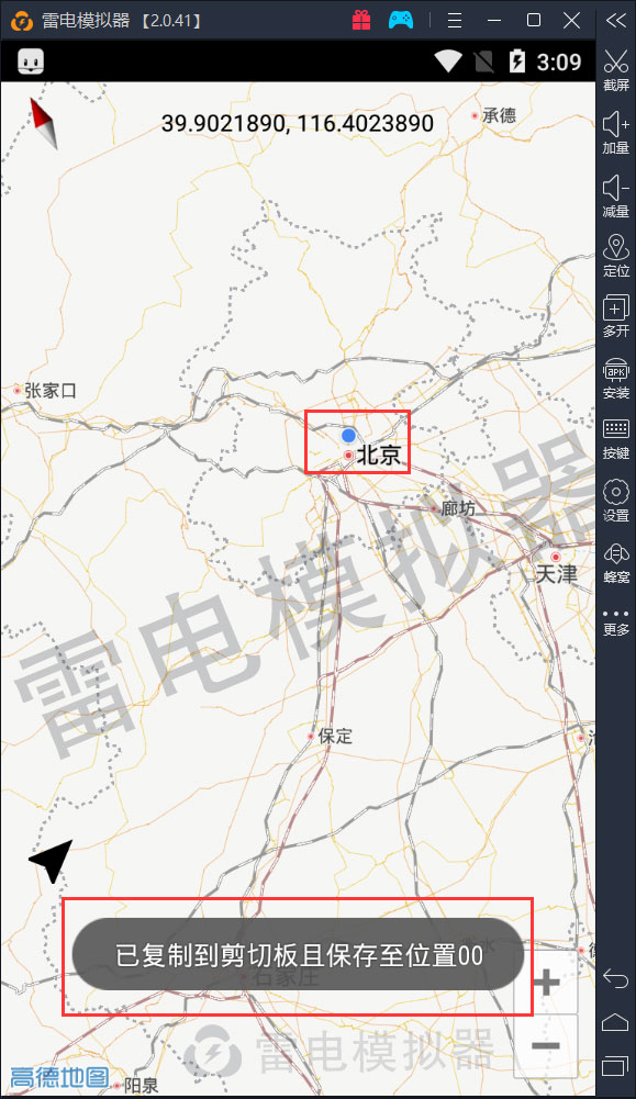 3.在lataclysm主界面打开“高德地图”,然后在地图里选择你要定位的地址,然后单击,系统就会保存这个位置地址,并自动把这个地址编号为00。