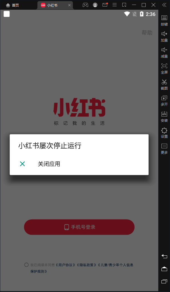 • 最新版模拟器,小红书多开登录总是提示登录过期闪退,如何解决