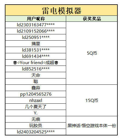 获奖用户请留意雷电模拟器内邮箱消息,在中奖7天内根据指引领取奖励!否则视为主动放弃!