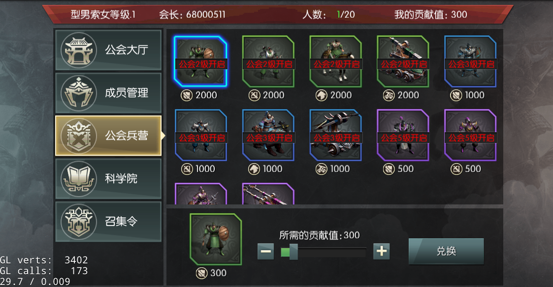 公会兵营可以使用贡献值兑换士兵,公会等级越高可以兑换的士兵等级也越高。