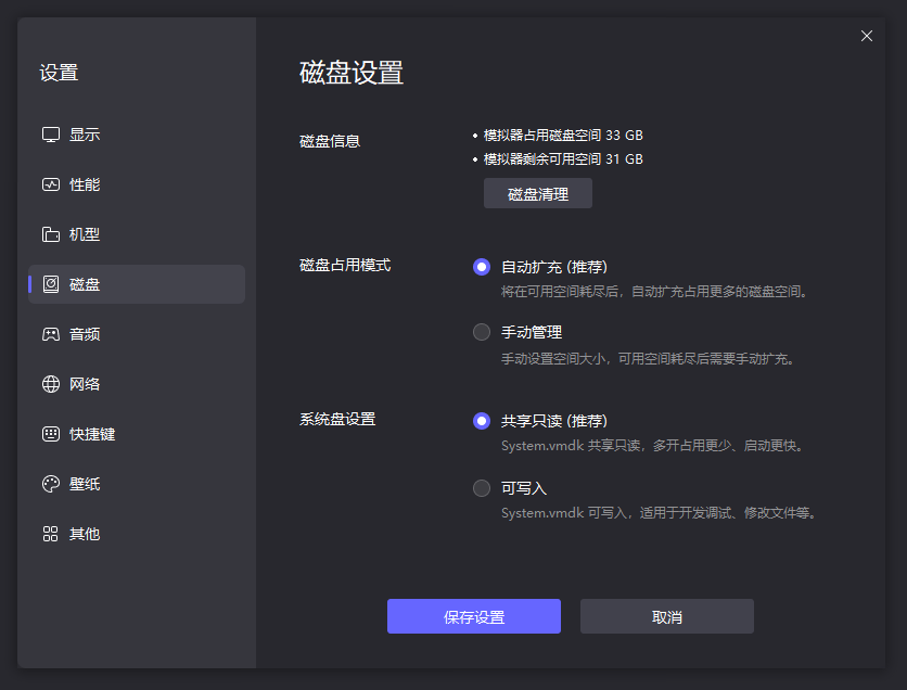 3、磁盘管理→启用「共享只读」(多开占用更少,启动更快)