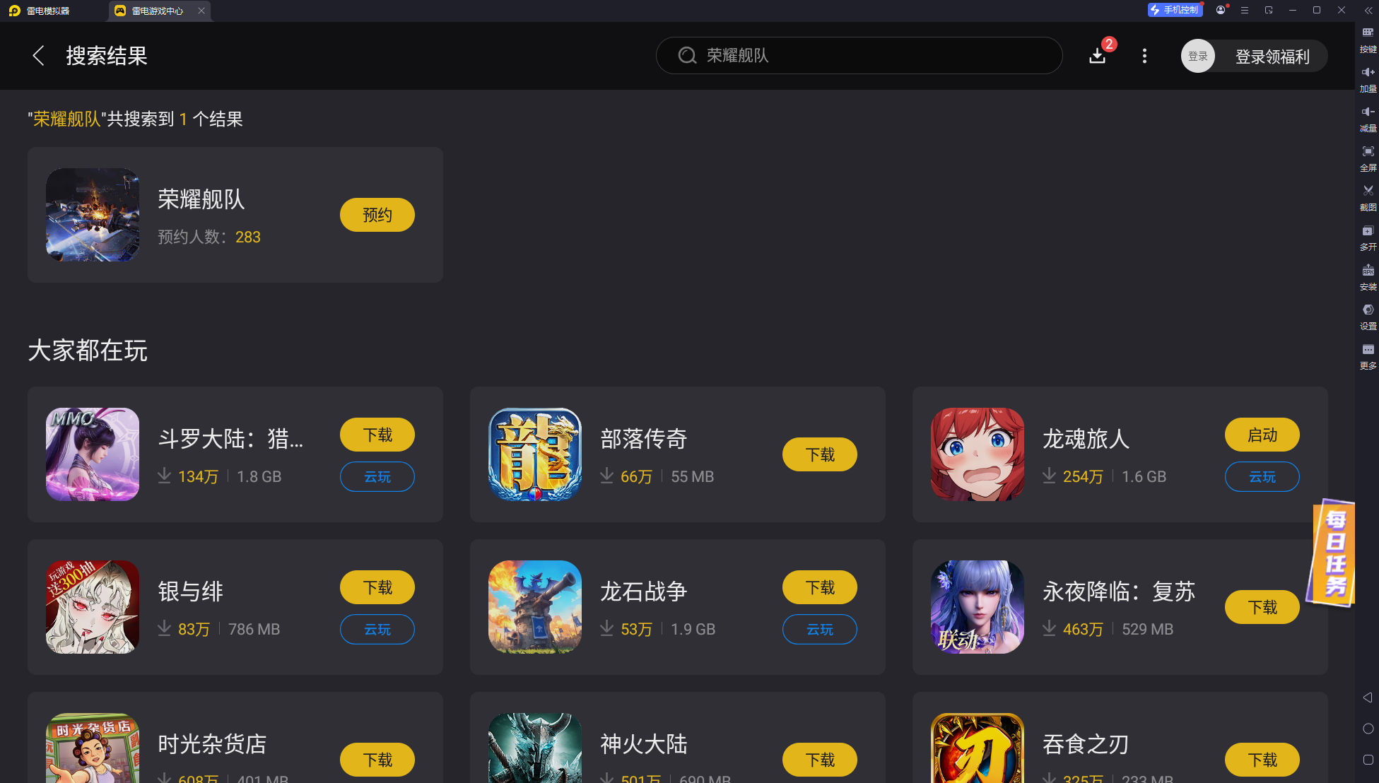 通过雷电模拟器下载荣耀舰队十分简便。