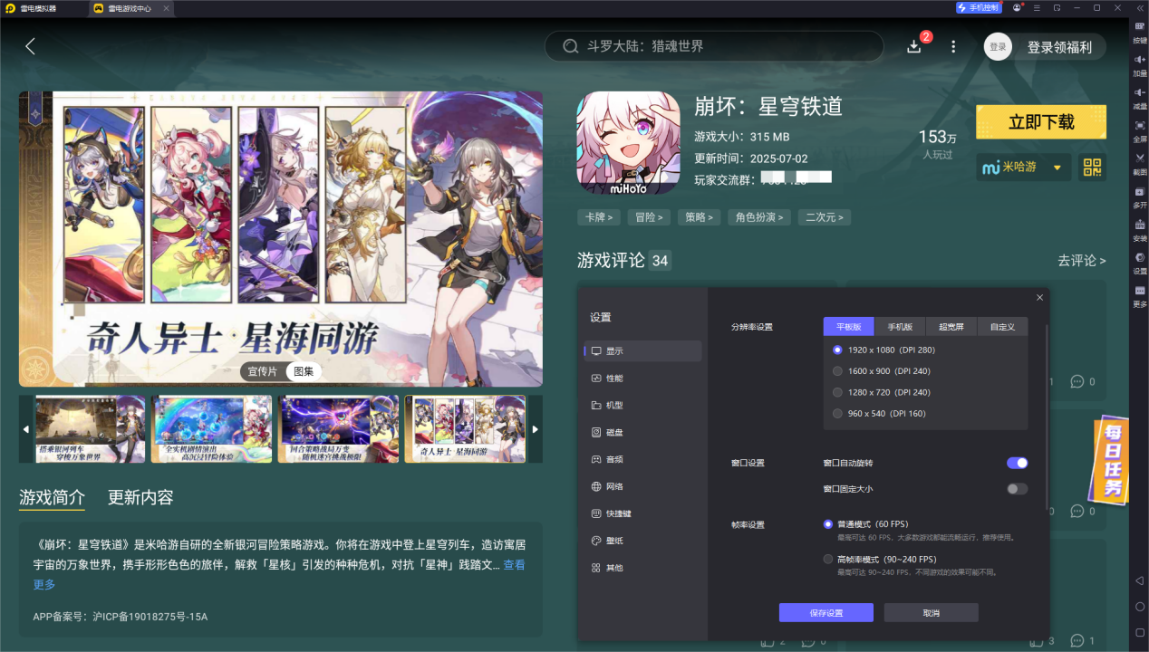 体验优化:对于崩铁这类次世代3D回合制RPG,模拟器能完美展现游戏的精美画面。通过图形渲染优化,玩家可以在电脑上体验比手机端更出色的光影效果和材质细节。雷电模拟器支持4K分辨率输出,让星穹列车的每一处细节都清晰可见。