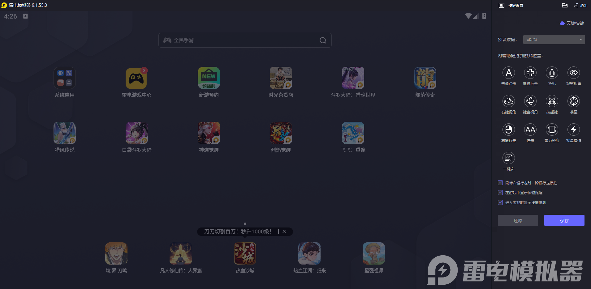 对于习惯用键盘鼠标的用户来说,雷电模拟器的操作设置特别友好。它可以自定义键盘和鼠标的按键映射,想怎么设置就怎么设置,很快就能适应大屏操作。还有宏命令和操作录制功能,重复性的操作能一键完成,节省不少时间。