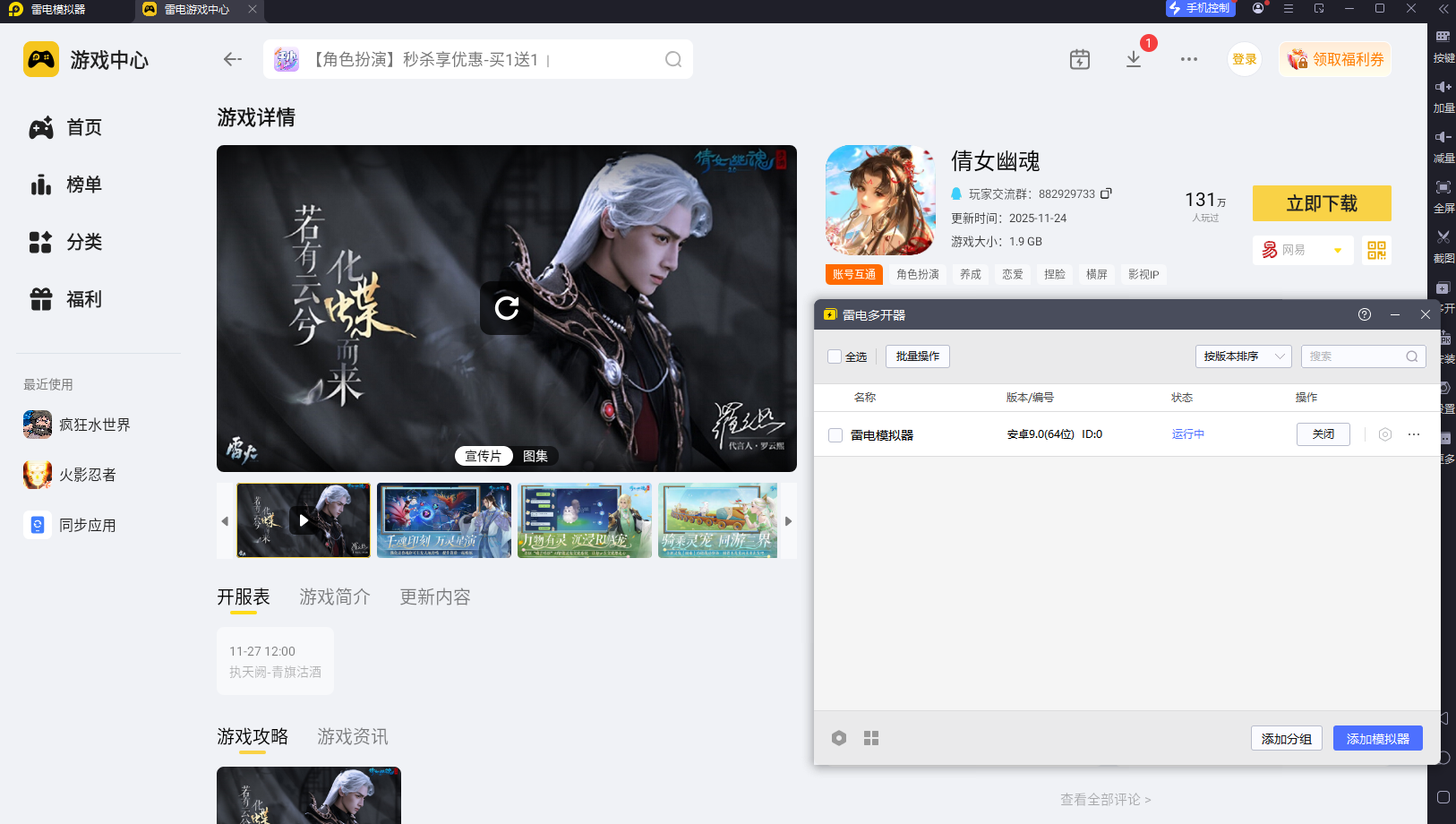 雷电模拟器——倩女幽魂电脑版的好拍档