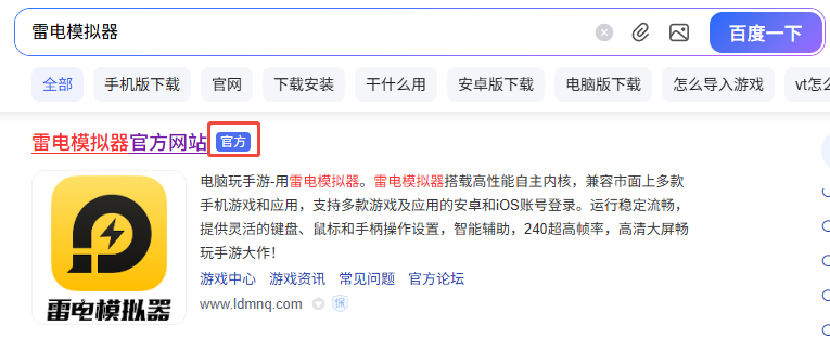 1.想通过雷电模拟器玩倩女幽魂,流程很简单。先打开浏览器搜雷电模拟器,认准带官方标识的链接进入官网,下载对应电脑系统的最新版本安装包。