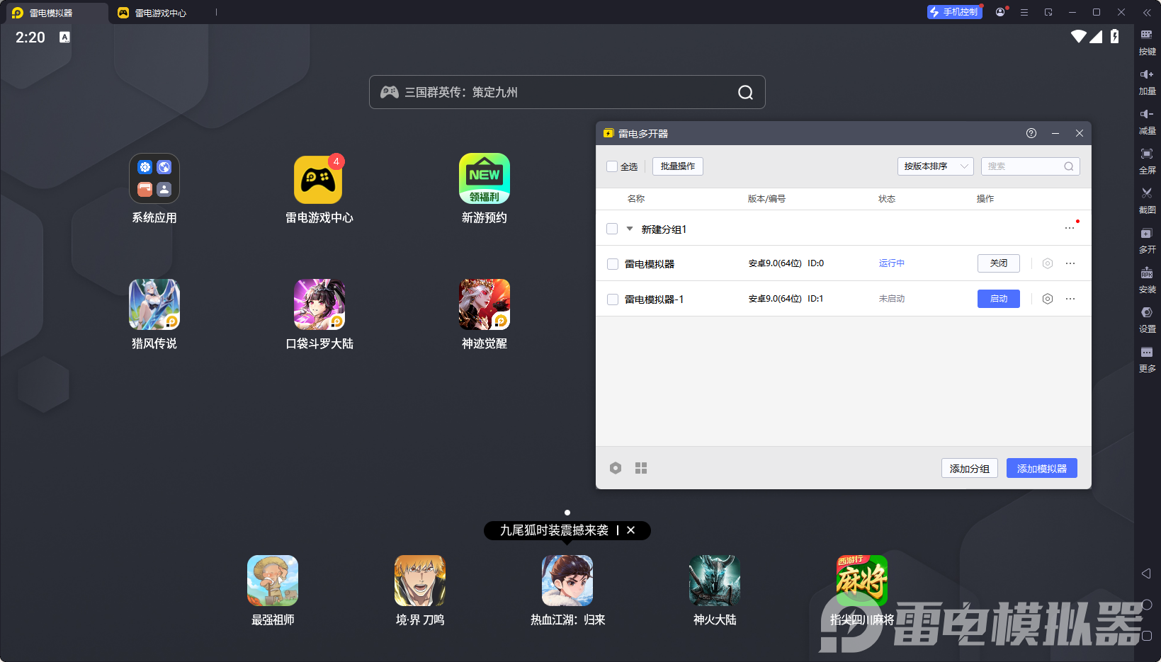 雷电模拟器有不少实用功能,比如支持多开,一台电脑能同时运行多个单机手游窗口,还能同步操作,节省时间。它还有操作录制功能,重复的任务可以录下来自动执行,不用一直盯着电脑。而且从官方渠道下载没有捆绑软件,定期更新修复漏洞,下载和使用都很安全,不用担心病毒风险。