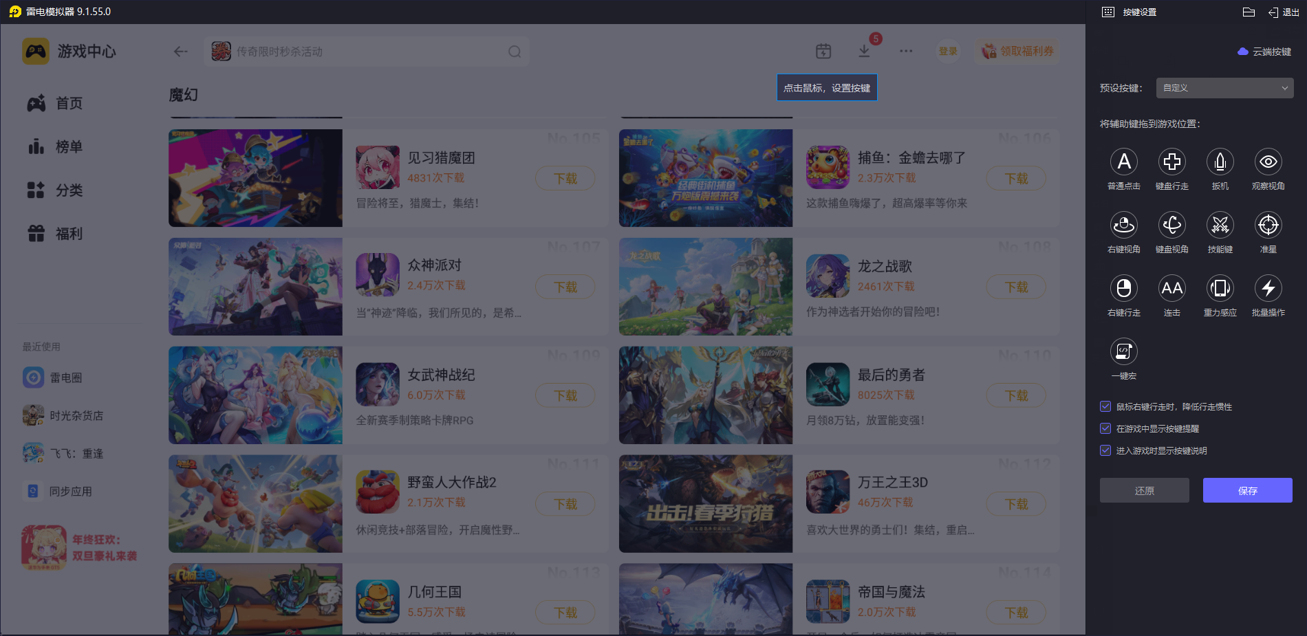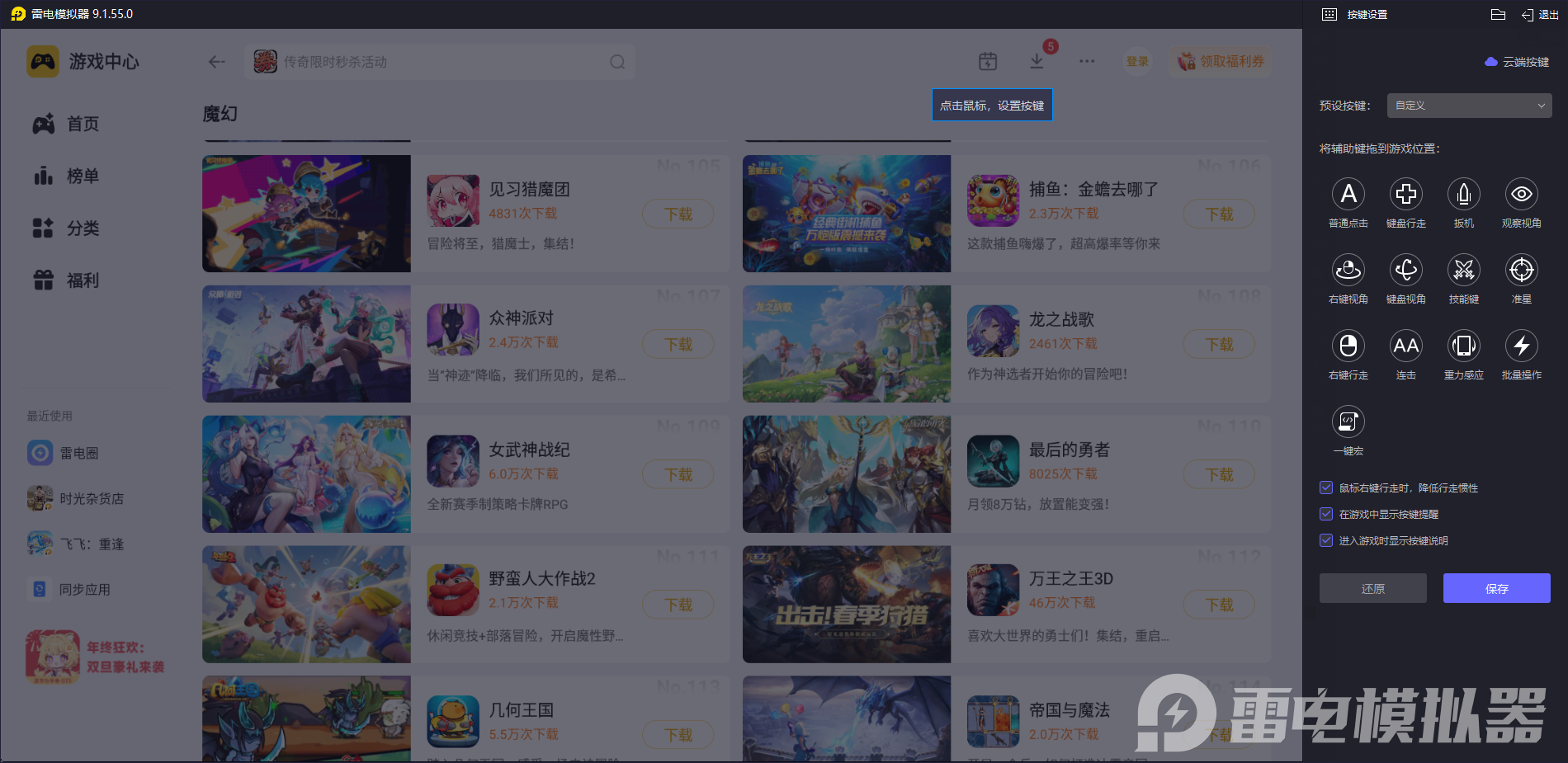 雷电模拟器有很多贴心的实用功能,让操作变得更简单。它支持电脑和模拟器之间快速传输图片、文档,不用借助其他工具,文件共享很便捷。还有一键录屏功能,想记录应用操作过程时,点击就能录制,导出也很轻松。另外,它的界面设计简洁,支持鼠标键盘操作,还能自定义按键,新手也能快速上手。