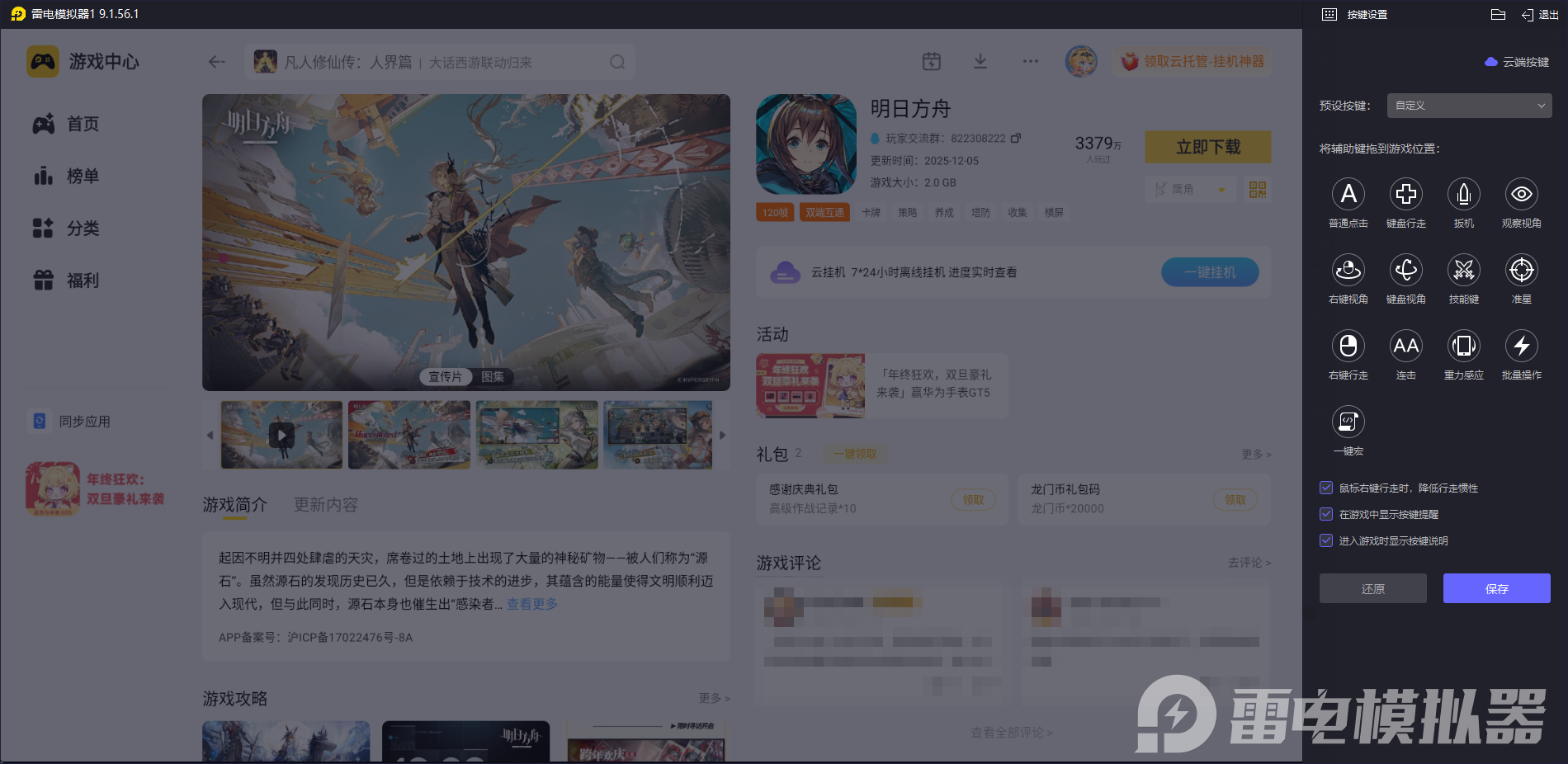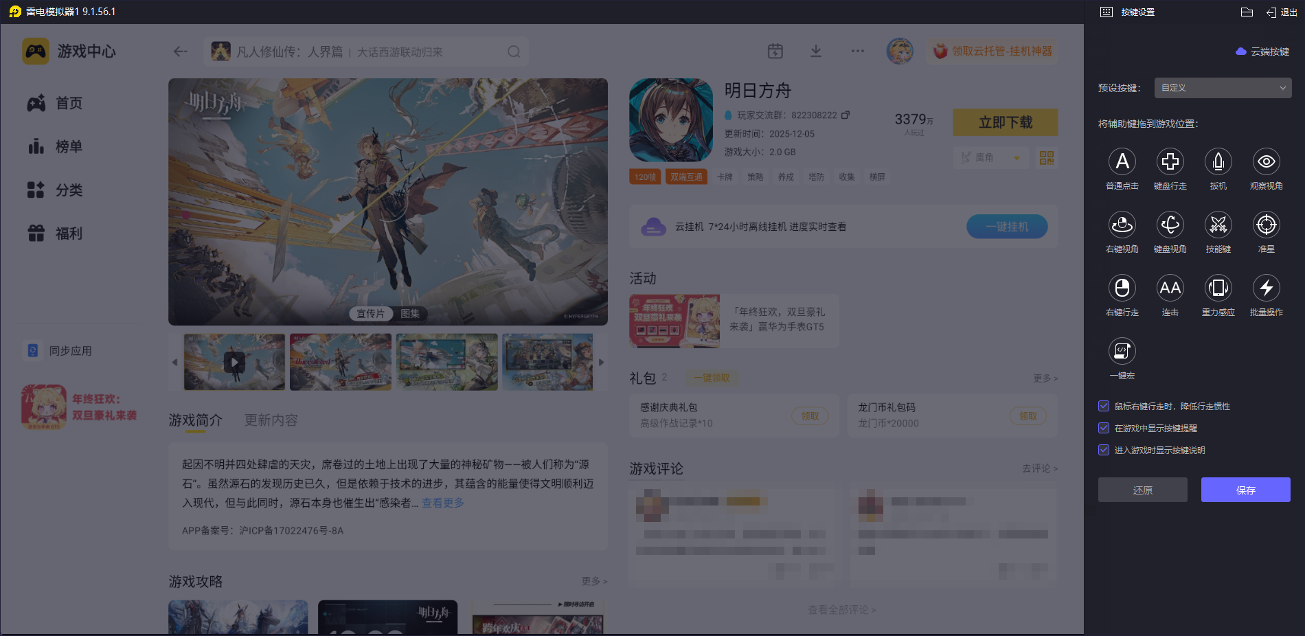雷电模拟器操控优化是核心亮点,原生支持键盘、鼠标和手柄即插即用,可视化按键映射功能让玩家能自定义布局,还可录制宏指令将复杂连招简化为单键触发,操作精准度远超触屏。辅助功能上,支持一键多开和同步操作,多账号管理更高效;内置操作录制、虚拟定位等模块,可自动完成重复任务,或满足位置依赖类应用的使用需求。此外,云端托管功能能实现全天挂机,不占用本地内存还不会掉线,进一步解放双手。