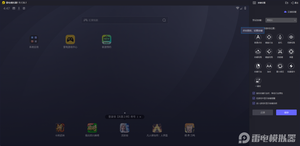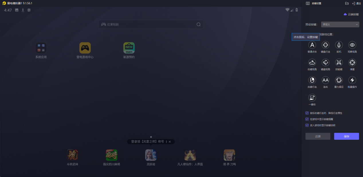 3.操控体验优异 原生支持手柄即插即用,可自定义键盘鼠标按键,还加入连点和视角旋转功能,3D手游能实现360°流畅旋转,操作延迟低,符合竞技类游戏需求。