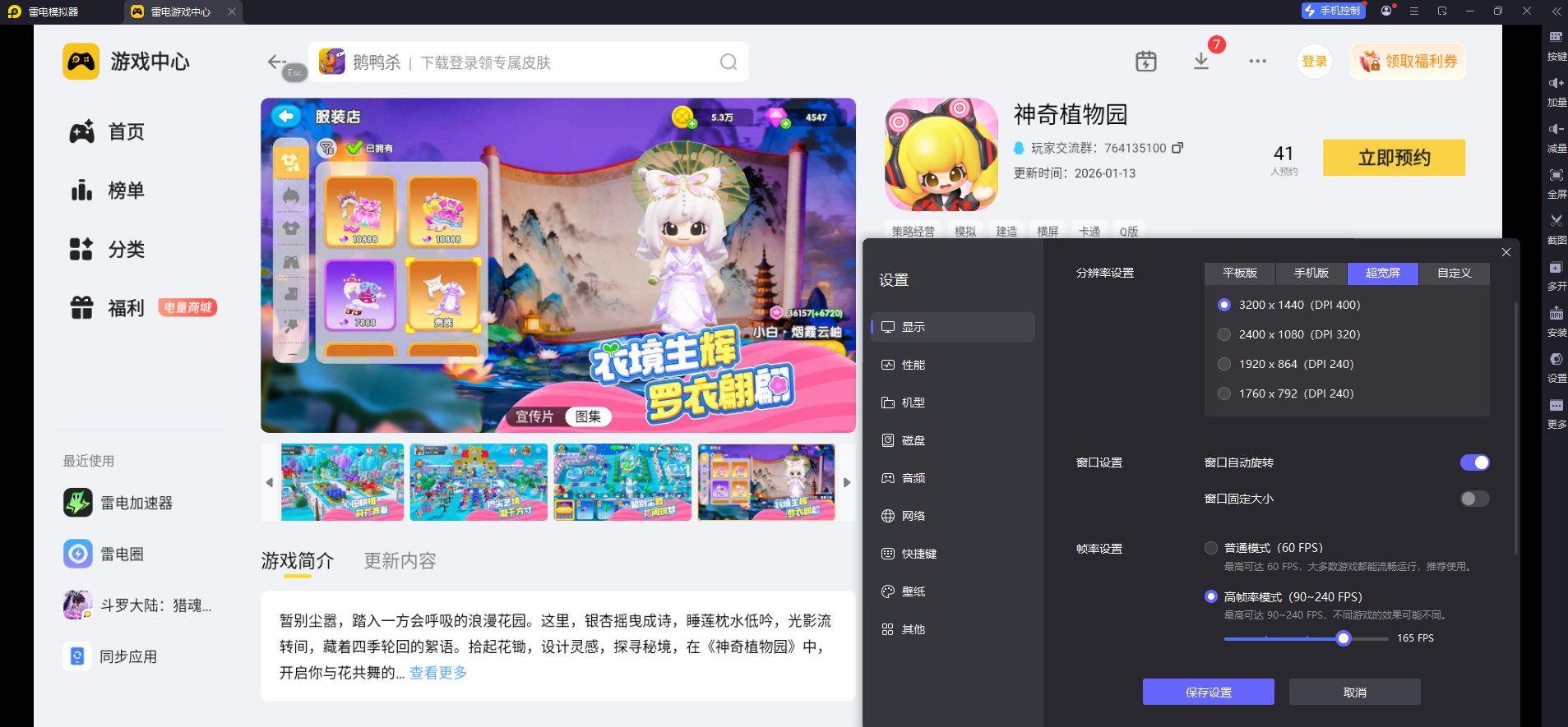 想要轻松体验神奇植物园电脑版,雷电模拟器无疑是省心之选,它贴合游戏的培育、造景需求,在操作和画面上的优势能让休闲时光更惬意。赶紧试试电脑版的大屏体验,在清晰画面和便捷操作中,打造属于自己的治愈系花园,享受培育植物的满满成就感吧!