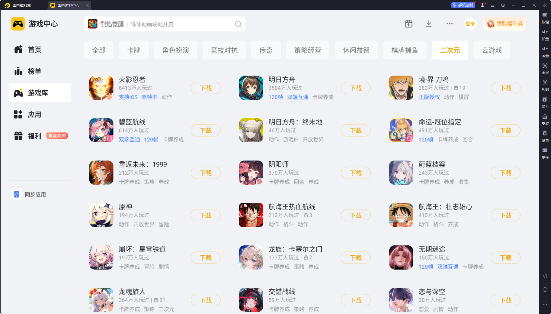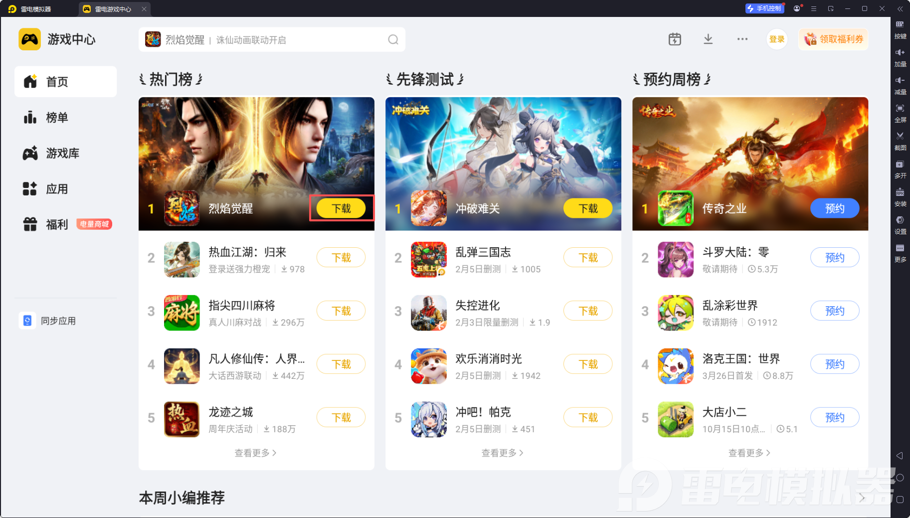 启动雷电模拟器,在其内置的游戏中心直接搜索游戏名称,点击下载按钮即可自动完成安装。这是最便捷的方式,游戏通常为适配好的版本。