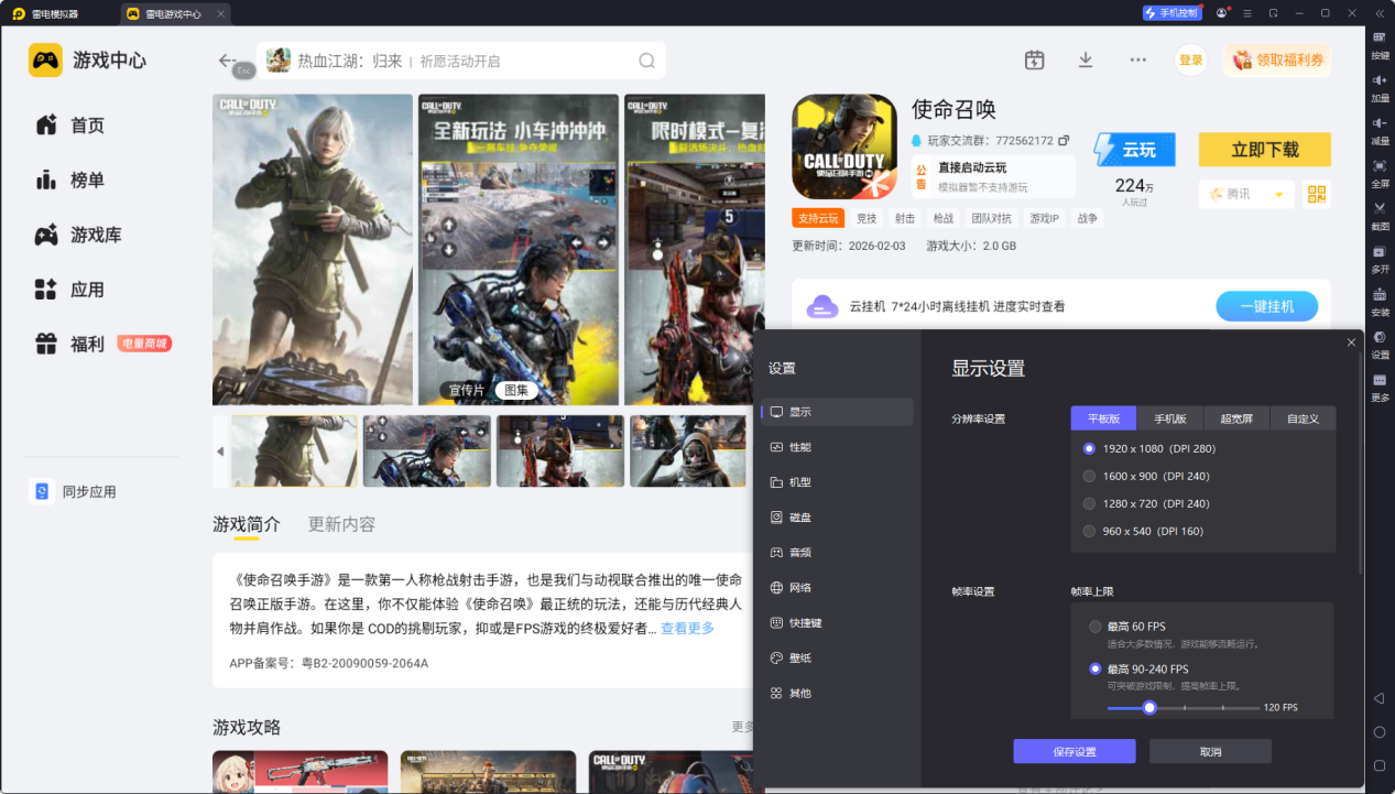雷电模拟器——使命召唤手游电脑版的好帮手