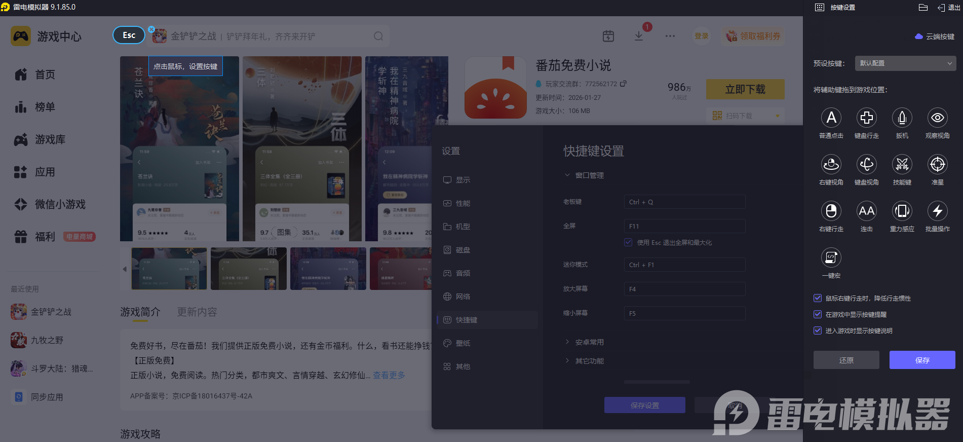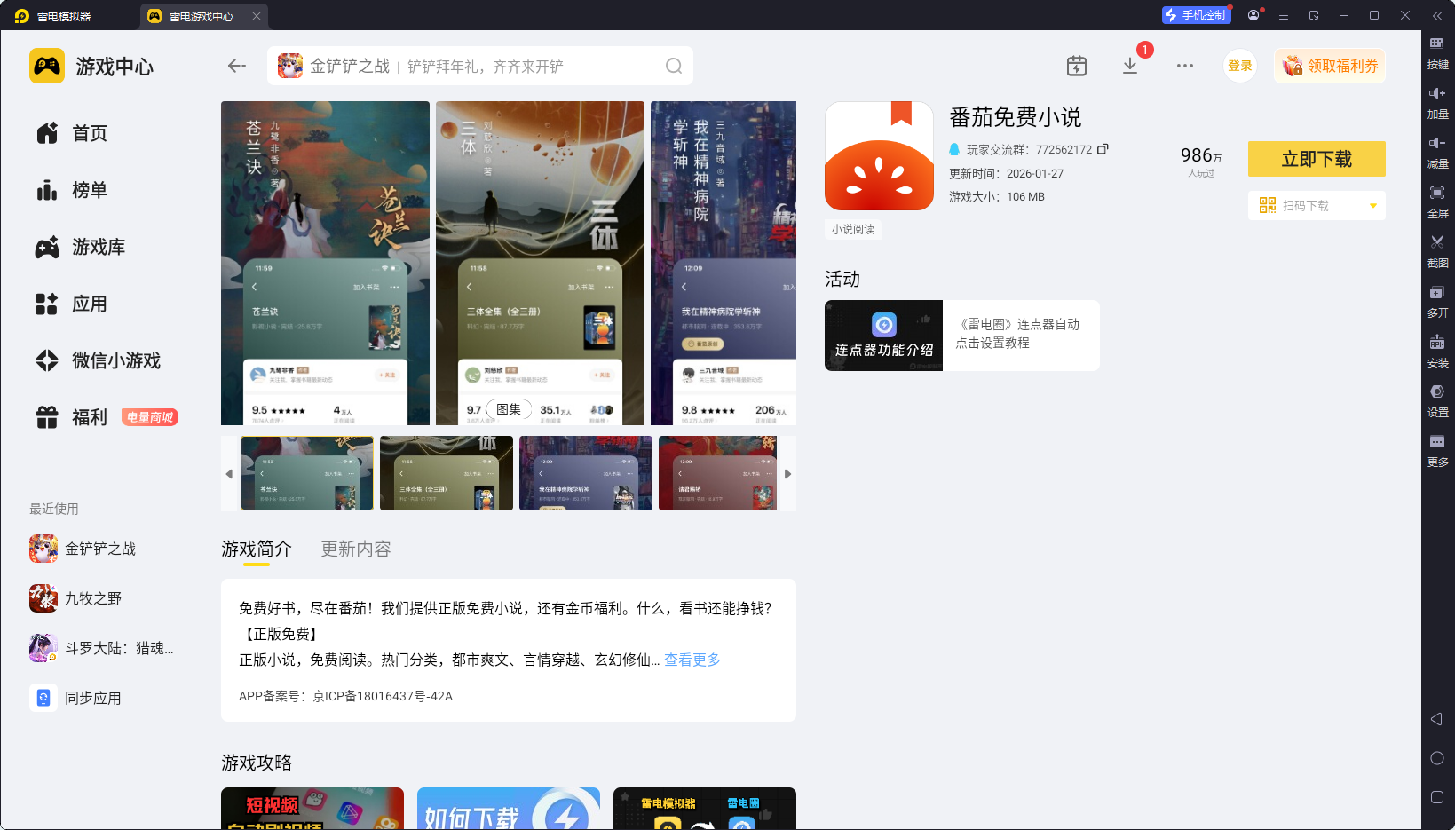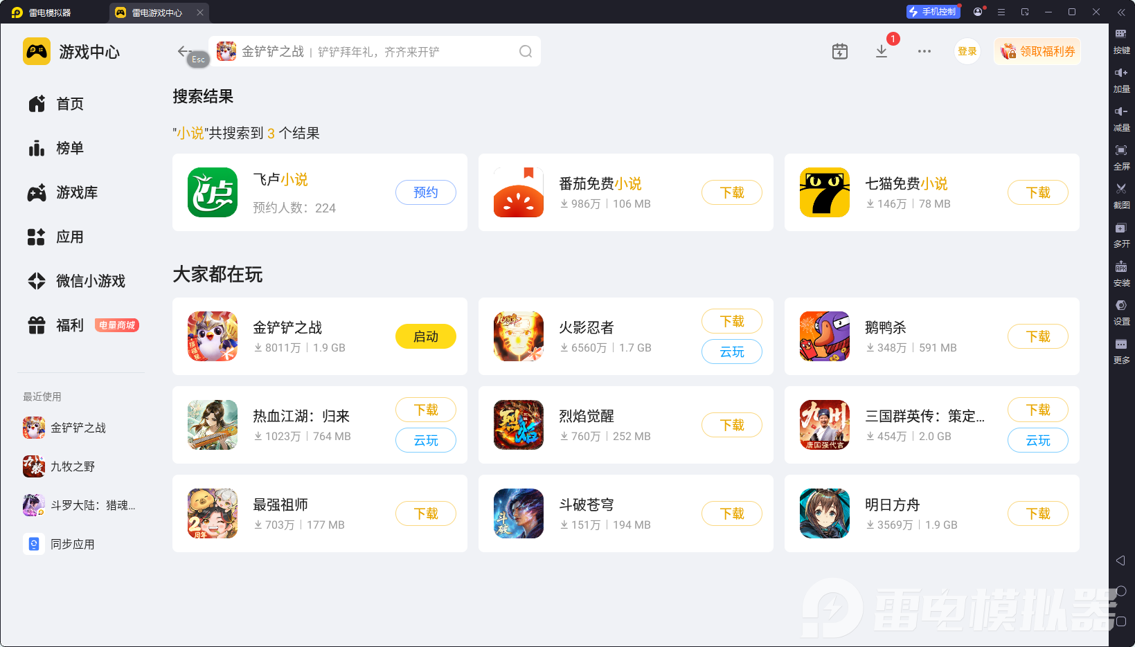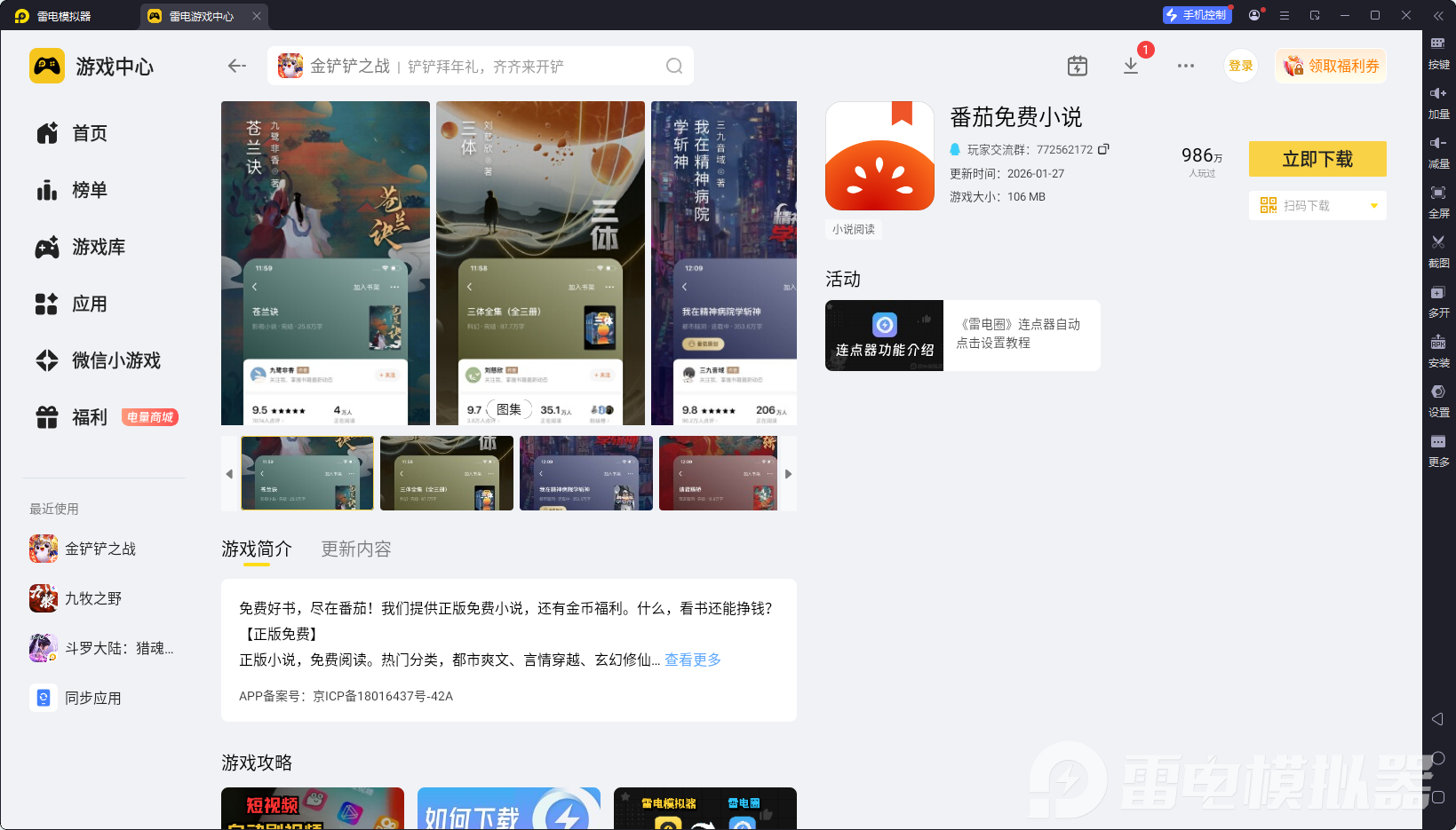 结合pc阅读需求,推荐大家使用雷电模拟器