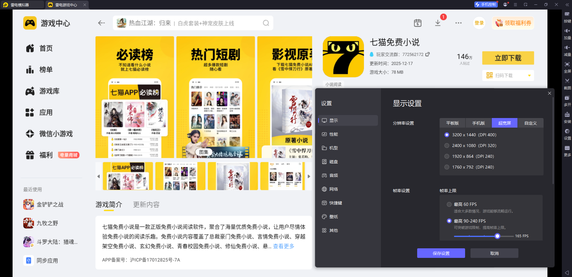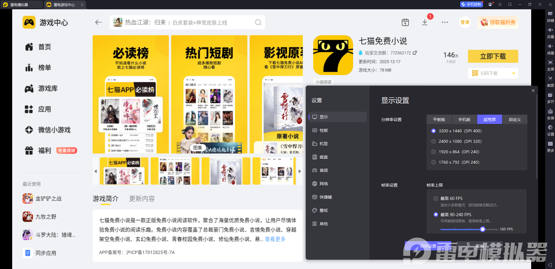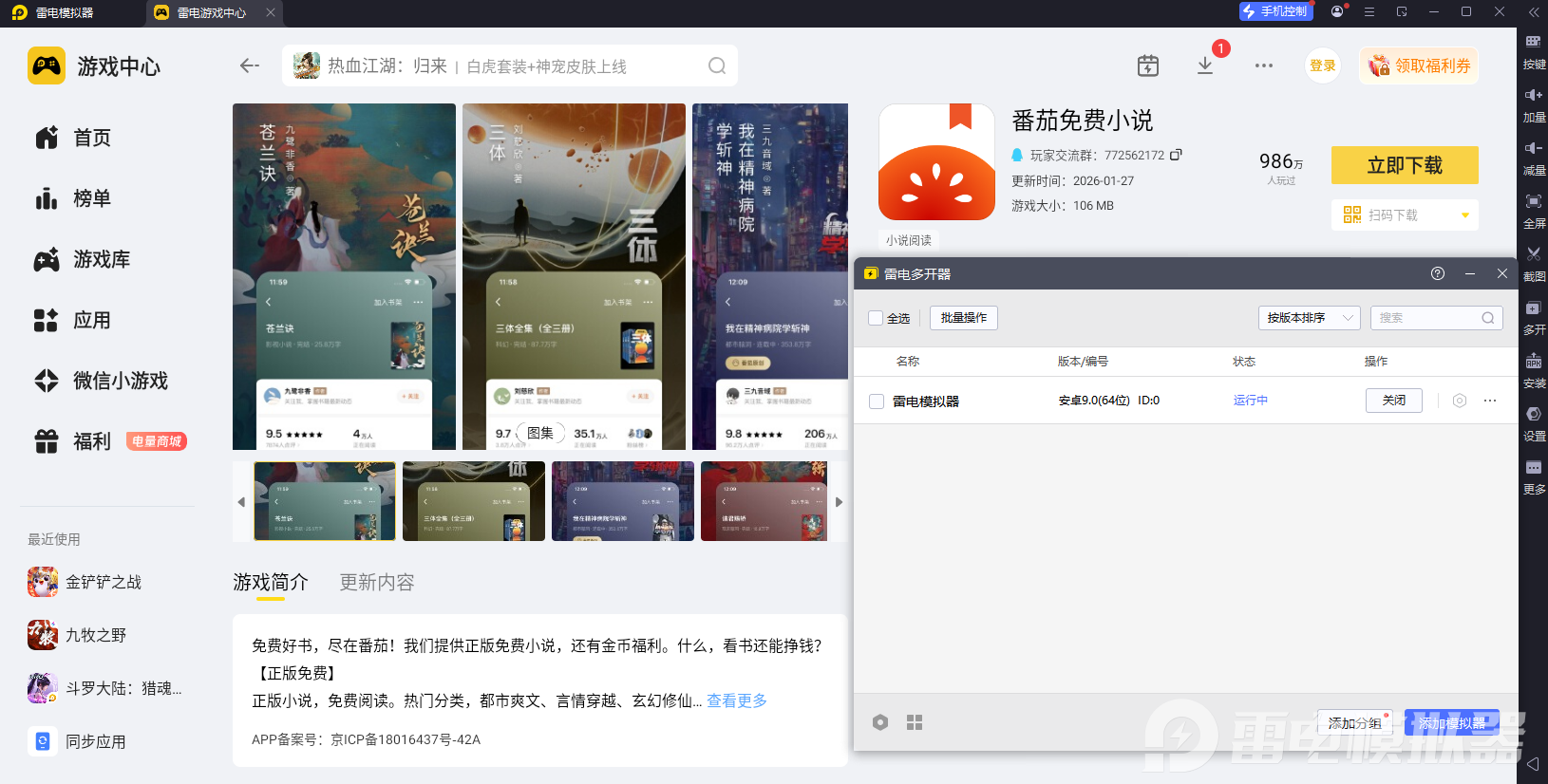 结合pc端看小说需要大屏体验、便捷操作、资源丰富的原因,推荐大家使用雷电模拟器。因为它能在电脑上完美运行各类手机小说APP,把手机上的阅读场景搬到电脑上,刚好契合大家用电脑看小说的所有需求,是日常阅读的优质选择。