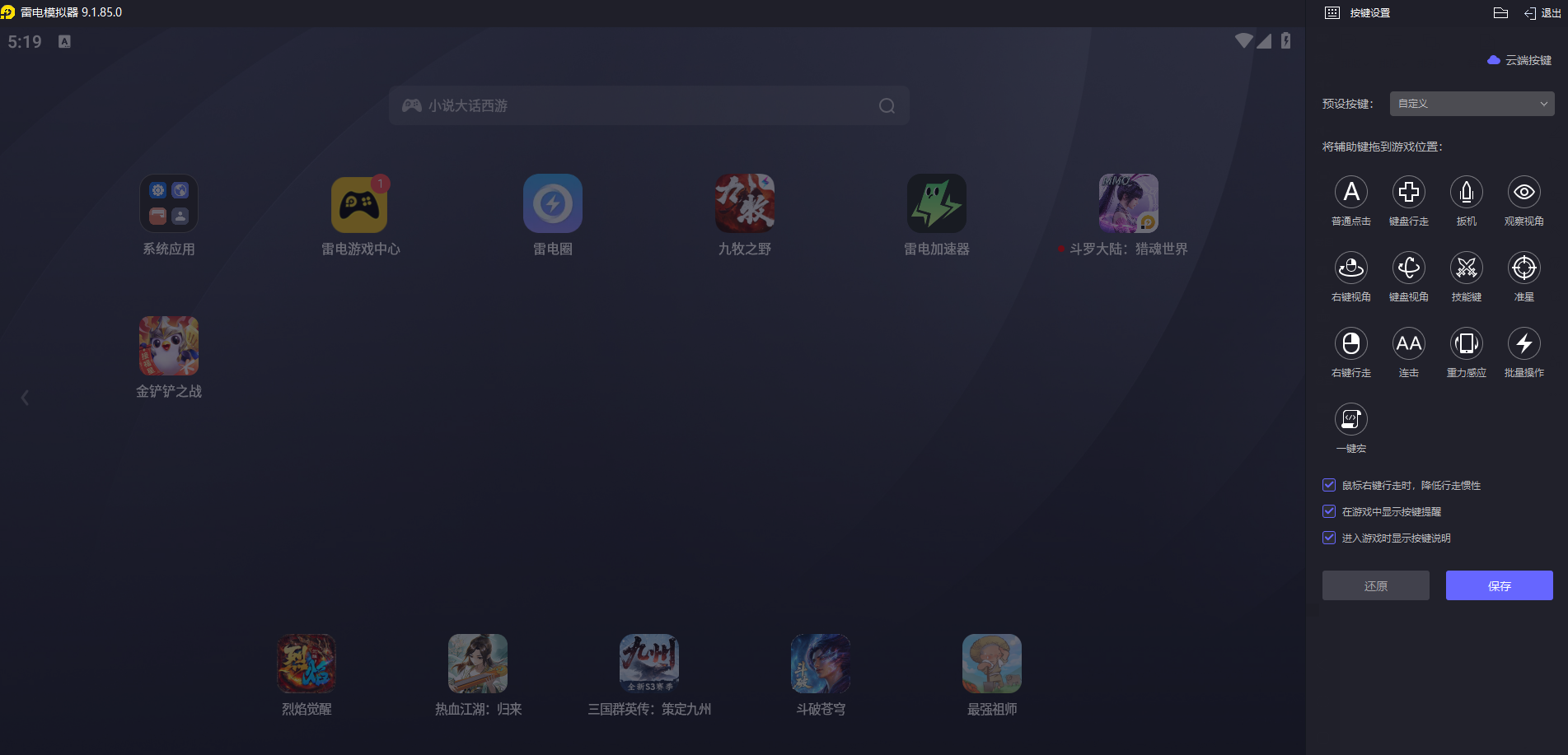 雷电模拟器在操作优化上做得十分到位,完美适配电脑键盘与鼠标操作。玩手游时可以自定义按键布局,用键鼠操控角色、释放技能,精准度与灵活度远超触屏;日常使用安卓应用时,鼠标点击、键盘输入更高效,彻底摆脱手机小屏操作的不便,不管是新手还是老用户都能快速上手。