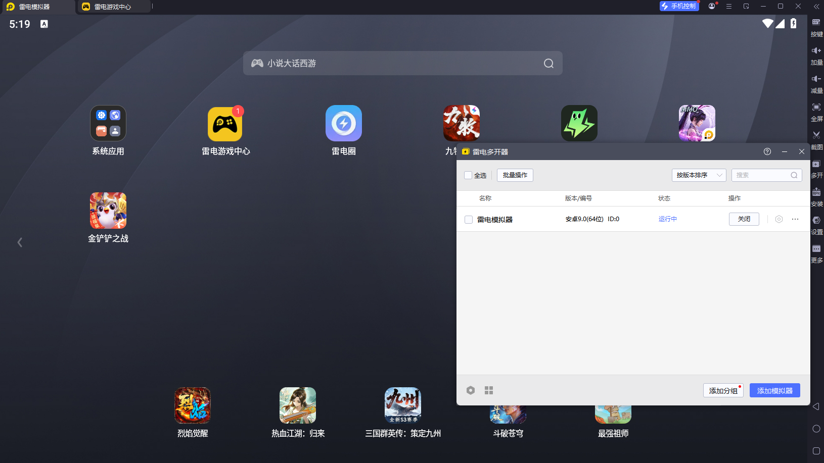 雷电模拟器的多开功能实用又便捷,只需简单设置就能同时开启多个模拟器窗口。不管是同时登录多个游戏账号,还是同时运行多个办公、社交类应用,都能轻松实现。多开状态下每个窗口都能稳定运行、互不干扰,既能满足玩家的多开需求,也能提升办公人群的使用效率。