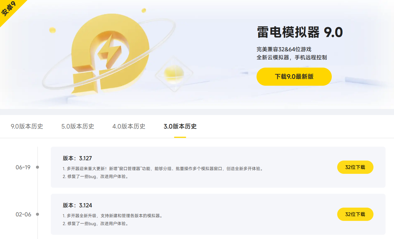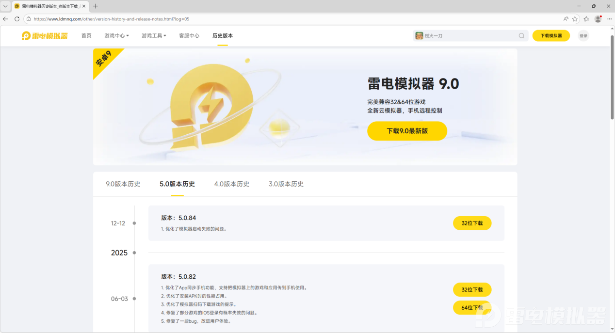 下载旧版本安卓模拟器,优先选择官方渠道,避免安全隐患。打开浏览器搜索“雷电模拟器”,认准带“官方”标识的链接进入,在首页找到“历史版本”板块,点击后会显示所有历史版本,标注有更新时间和适配说明,根据自己的电脑配置和手游需求选择对应旧版本,点击下载即可,每个版本都附带安全校验信息,可放心下载。