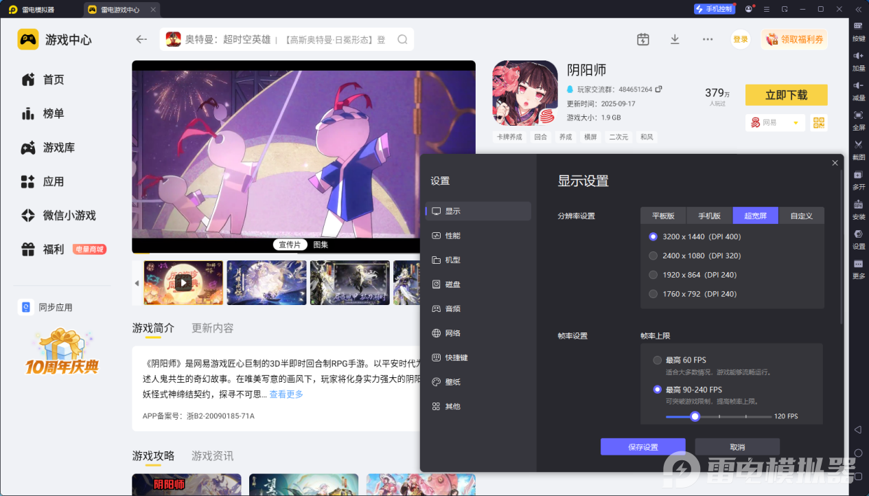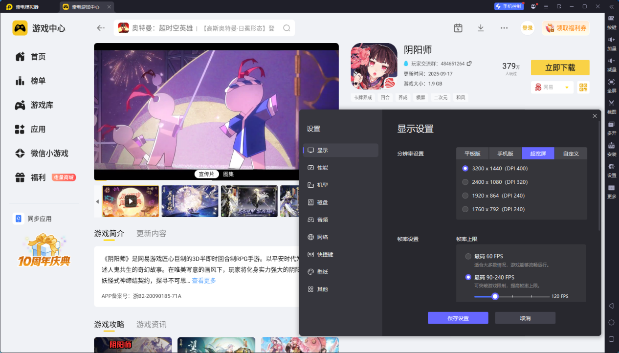 雷电模拟器支持高分辨率高帧率输出,以玩阴阳师为例,手机小屏会压缩画面细节,式神的皮肤纹理、大招释放的光影特效常常模糊不清。而雷电模拟器的高清大屏的显示,能完整呈现阴阳师的和风场景,式神发丝、服饰暗纹都清晰可见。