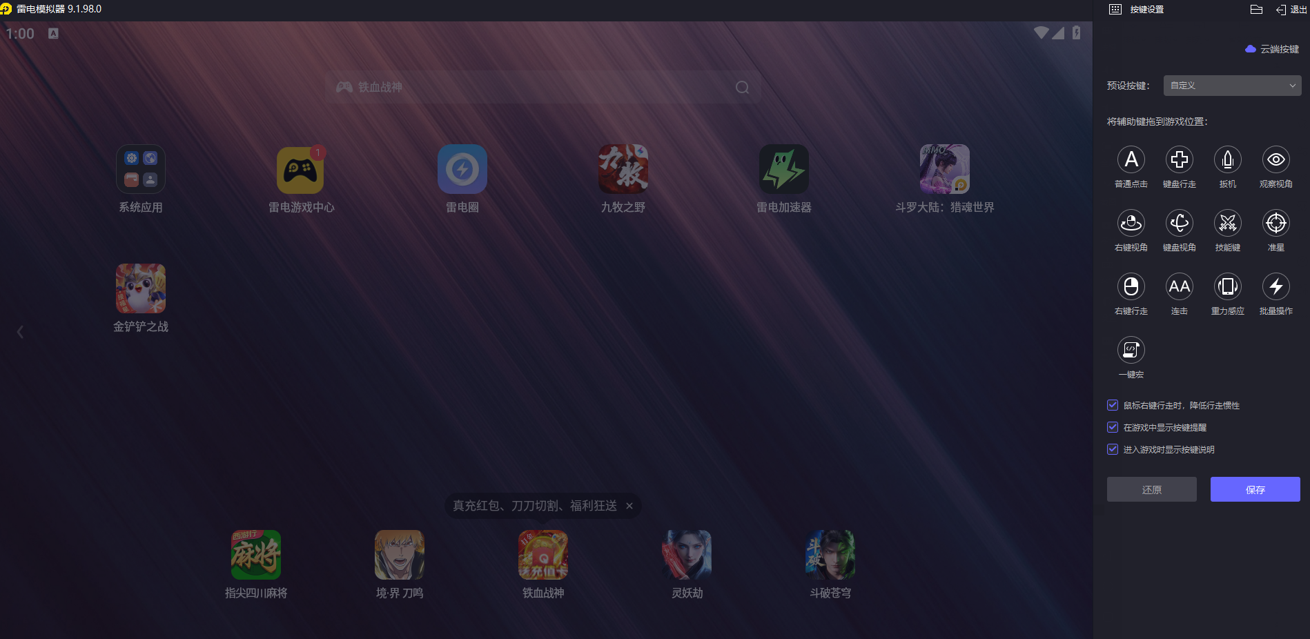 雷电模拟器在操作上的表现,是它最打动玩家的地方之一,新手也能快速上手,老玩家则能解锁更精准的操控体验。它内置了覆盖很多热门游戏的预设键位方案,打开游戏就能直接用键鼠操作,不用自己手动设置。同时支持自定义键位布局,你可以根据自己的操作习惯,调整每个按键的位置,还能设置宏命令,把复杂的连招或重复操作简化成一键触发。