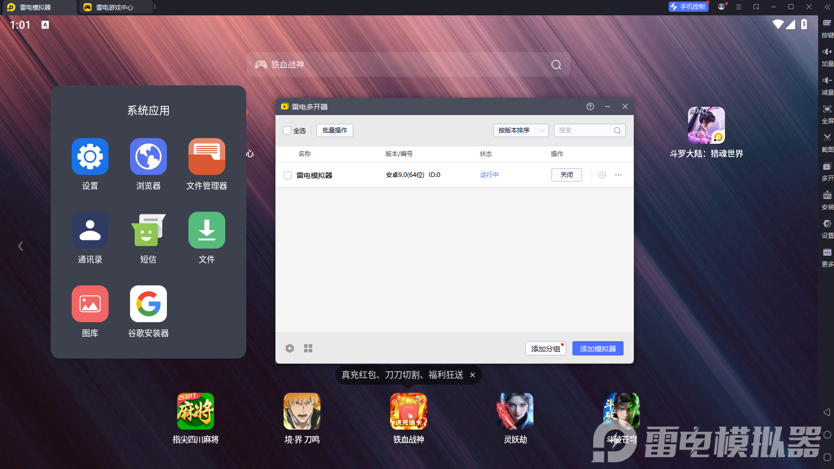 除了操作和画面,雷电模拟器的多功能设计,也能满足不同玩家的多样需求,实用性拉满。它的多开功能非常便捷,你可以同时打开多个游戏账号,一边挂着养成类游戏收资源,一边玩竞技类游戏,大大节省了时间。还有云游戏功能,不用下载庞大的游戏安装包,直接在线就能玩,特别适合电脑存储空间不足的玩家。