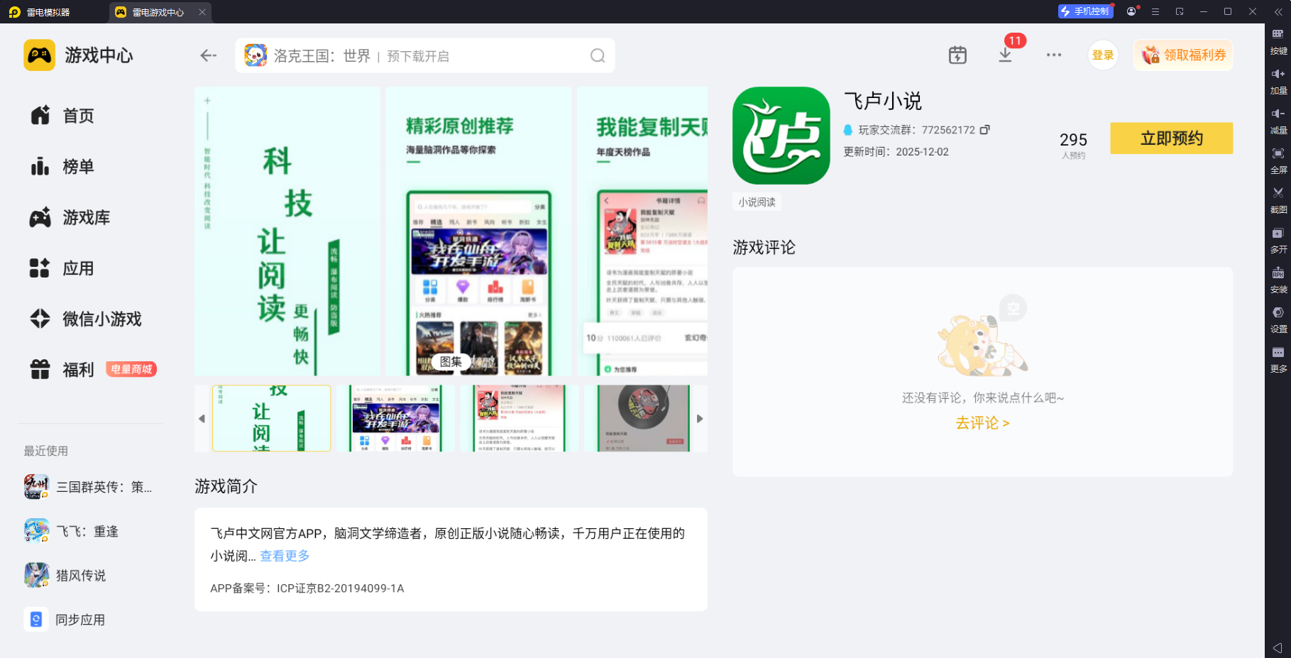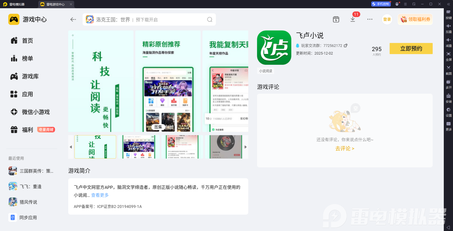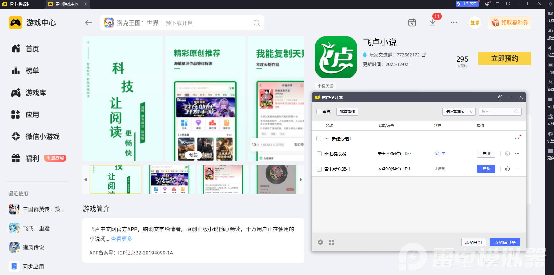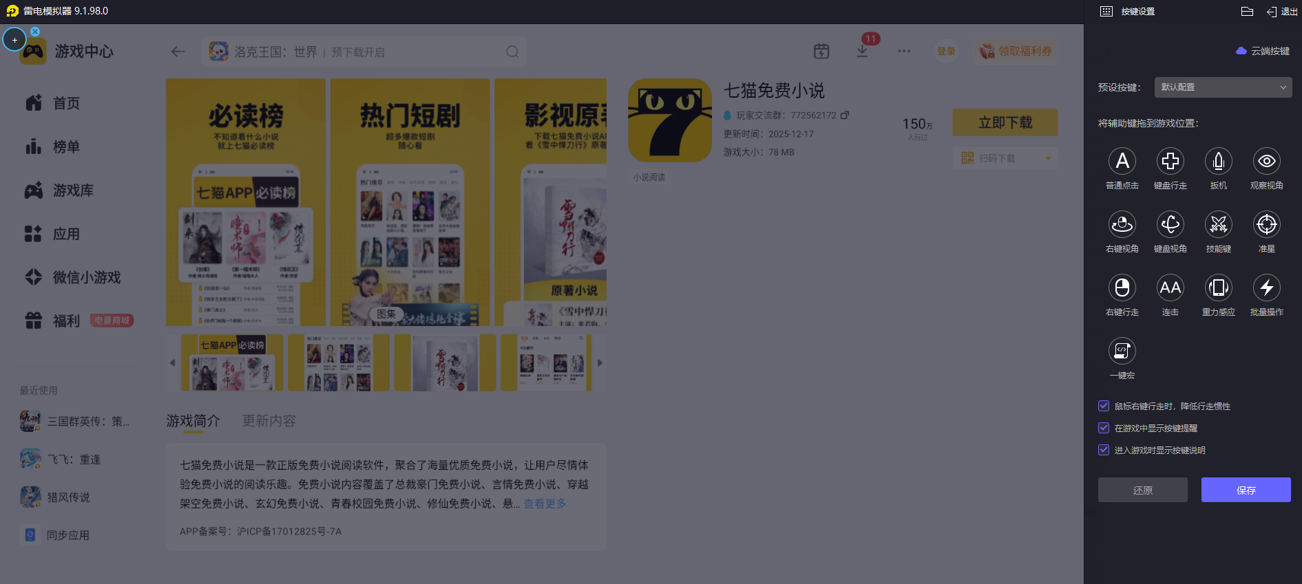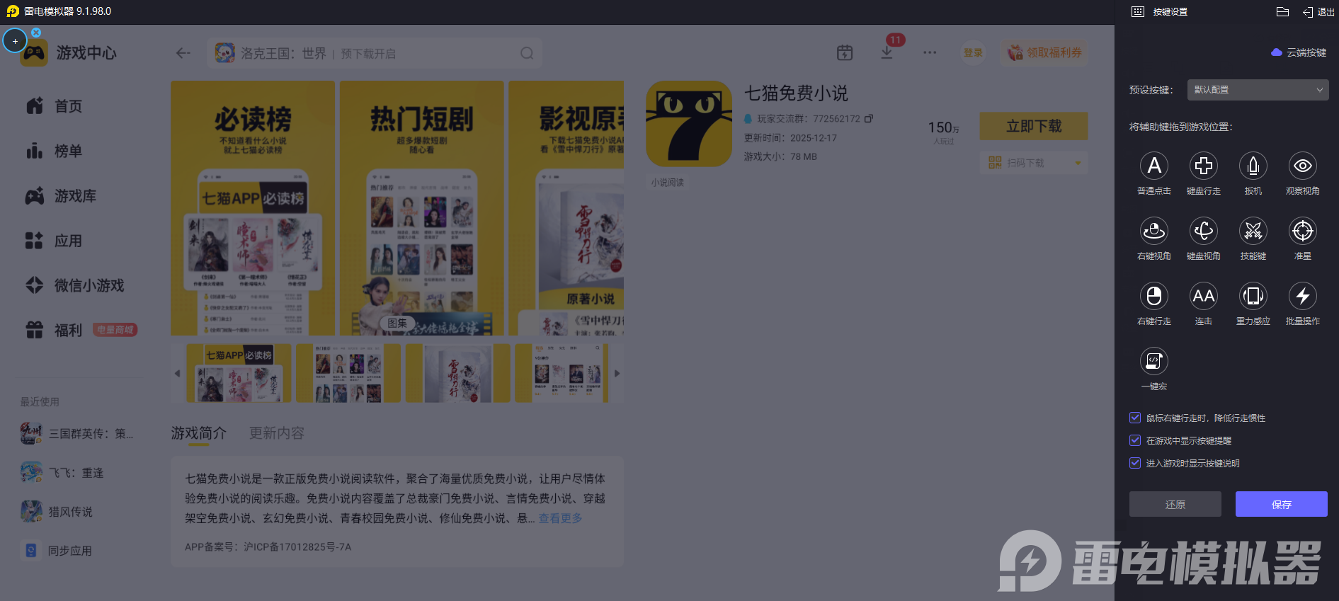 选择合适的pc端看小说软件,能让日常阅读变得更惬意,雷电模拟器凭借清晰舒适的画面、简单顺手的操作和全面实用的功能,成为pc端小说阅读的优质选择,这款方式实用性强,值得尝试使用。