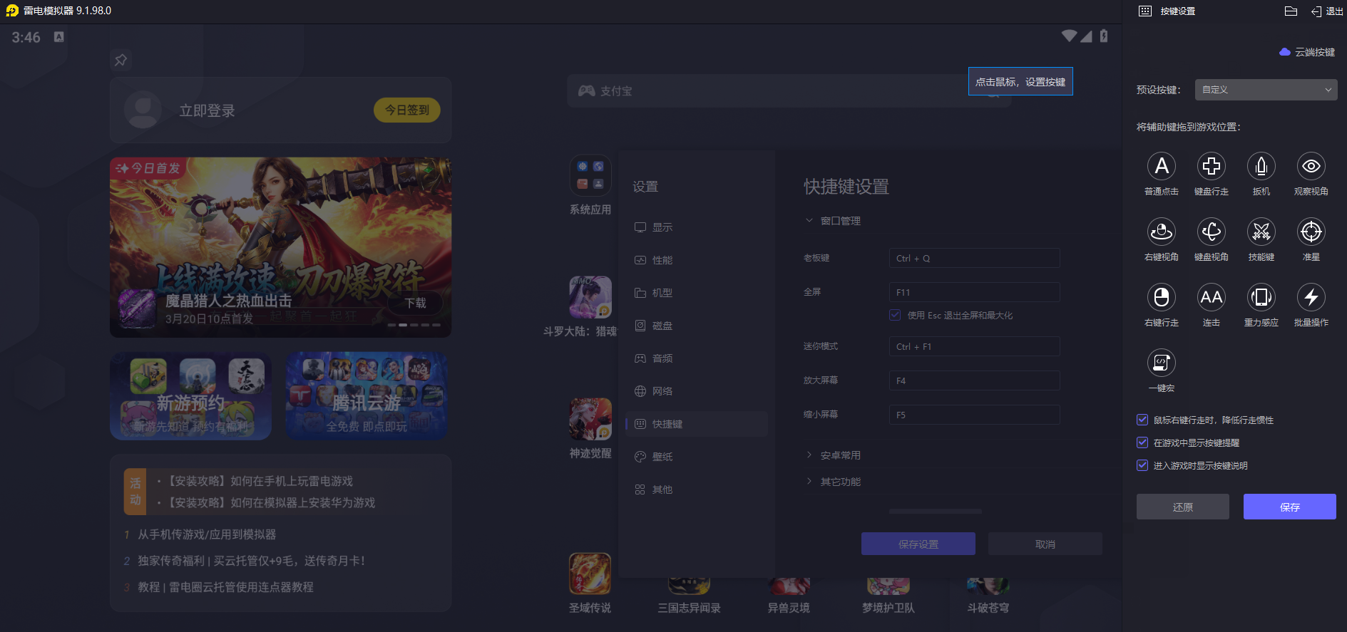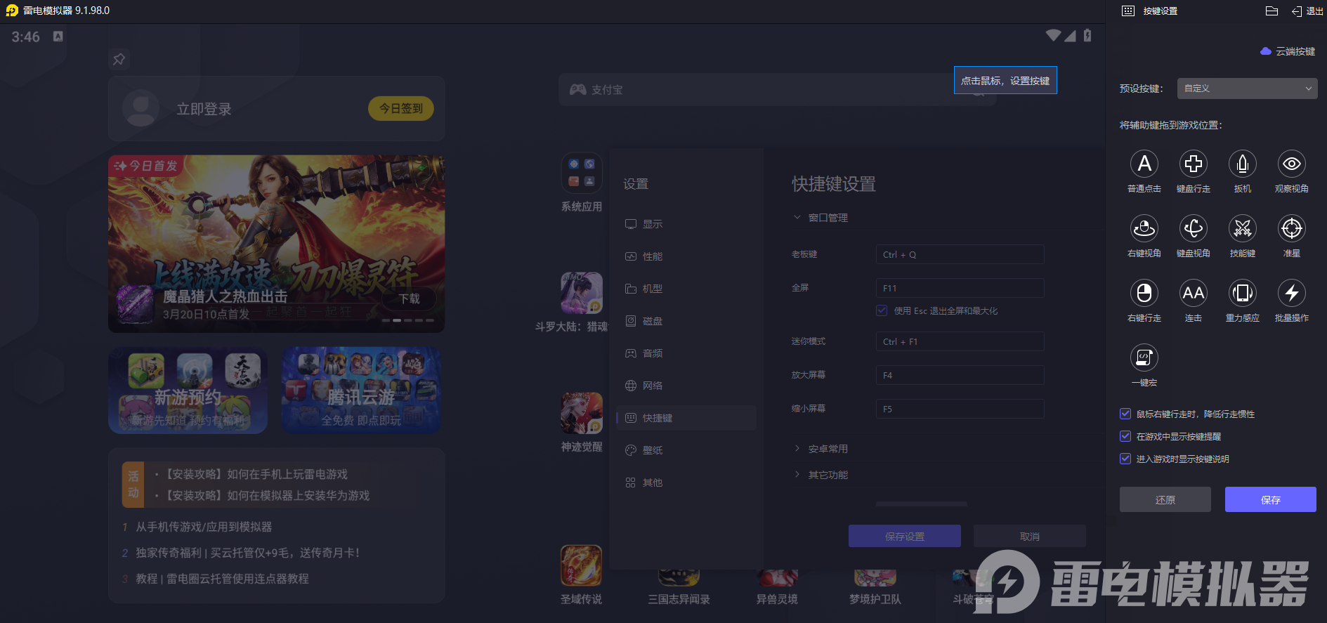 雷电模拟器的操作体验是核心优势之一。它自带丰富的预设键位方案,能直接适配各类手游的操作逻辑,把手机触屏操作转化为键盘鼠标操控,精准度和响应速度都更有保障。还支持自定义按键设置,可根据个人习惯调整按键位置,搭配手柄也能直接使用,游玩时的操作手感更贴合需求。