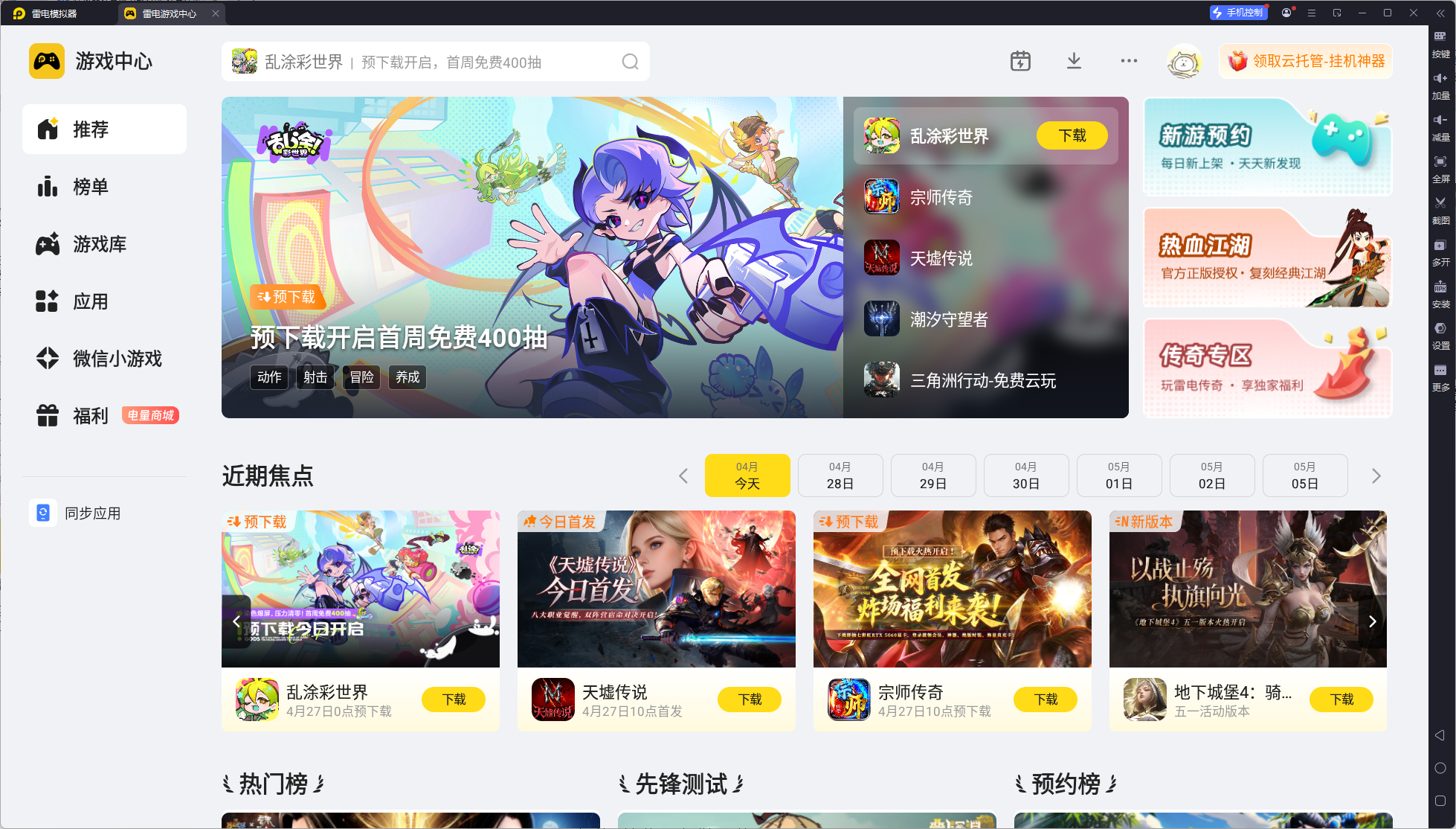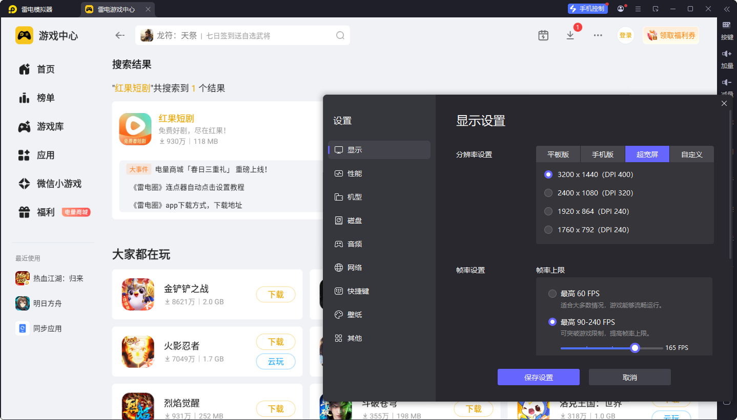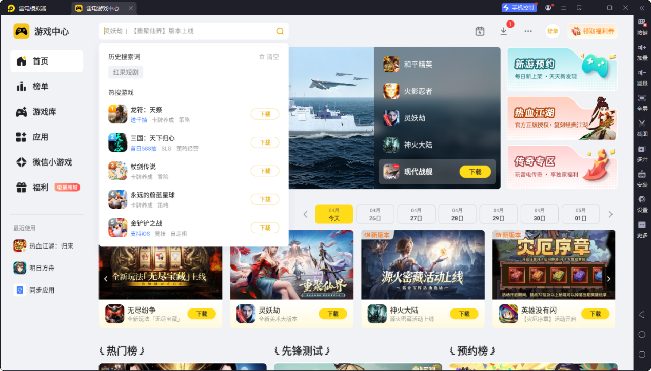 启动模拟器后,直接在内置的雷电游戏中心搜索想要运行的应用,点击下载安装就能直接打开使用,新手也能快速上手。