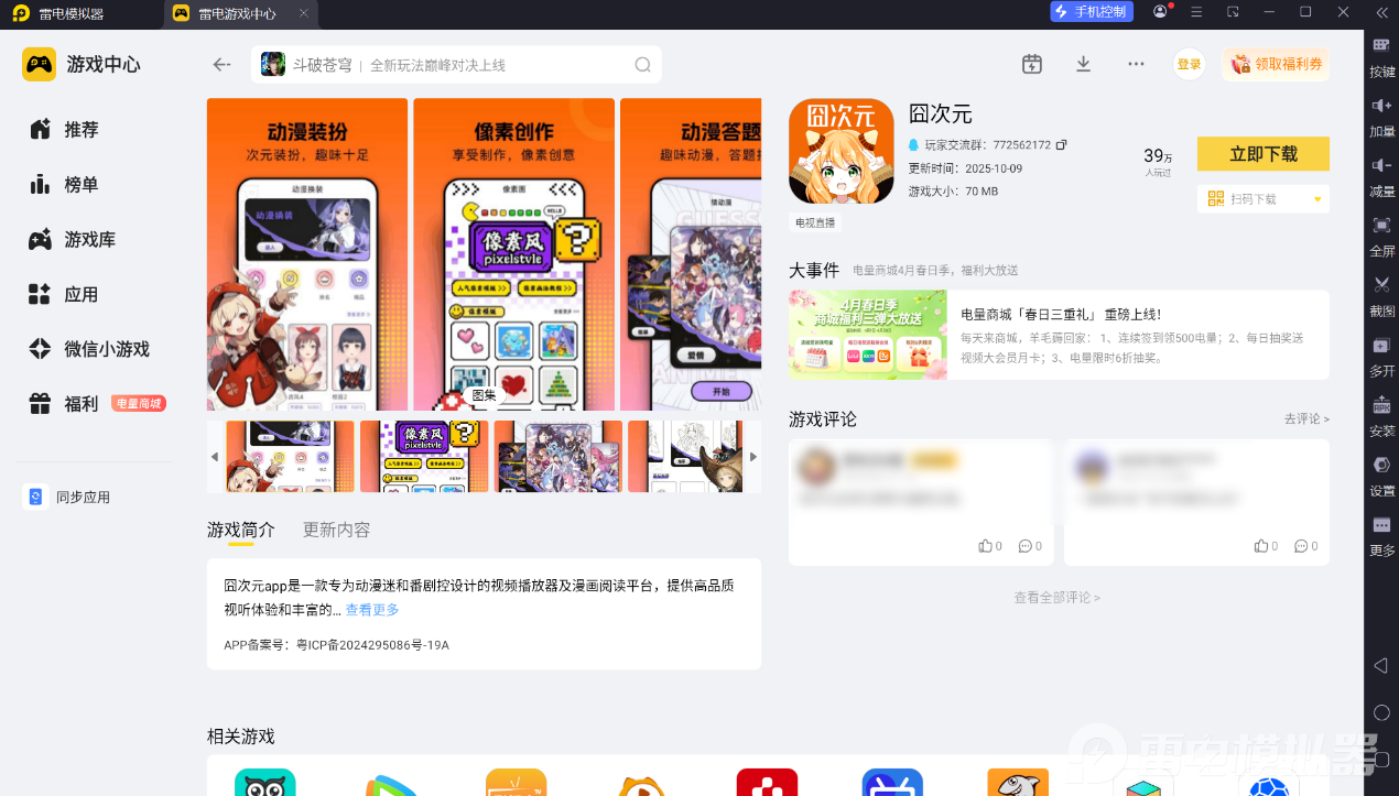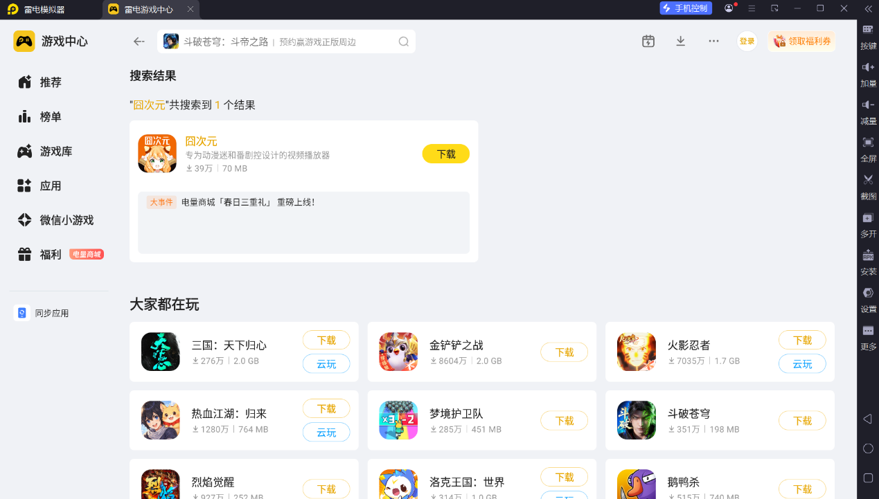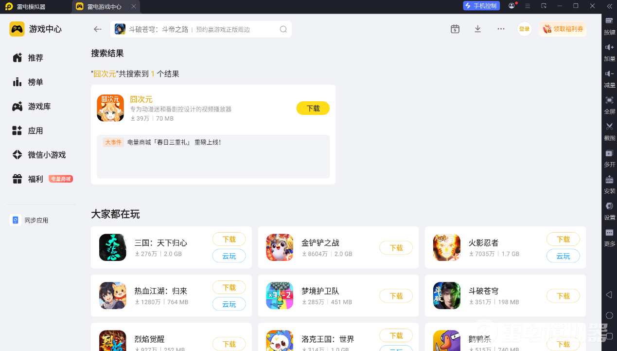 想要体验囧次元电脑版,大家先访问雷电模拟器官方网站,下载适配电脑系统的最新版本模拟器。完成安装后,打开模拟器内置的游戏中心,搜索“囧次元”即可下载安装对应应用,全程操作简洁,无需额外复杂设置即可正常使用。