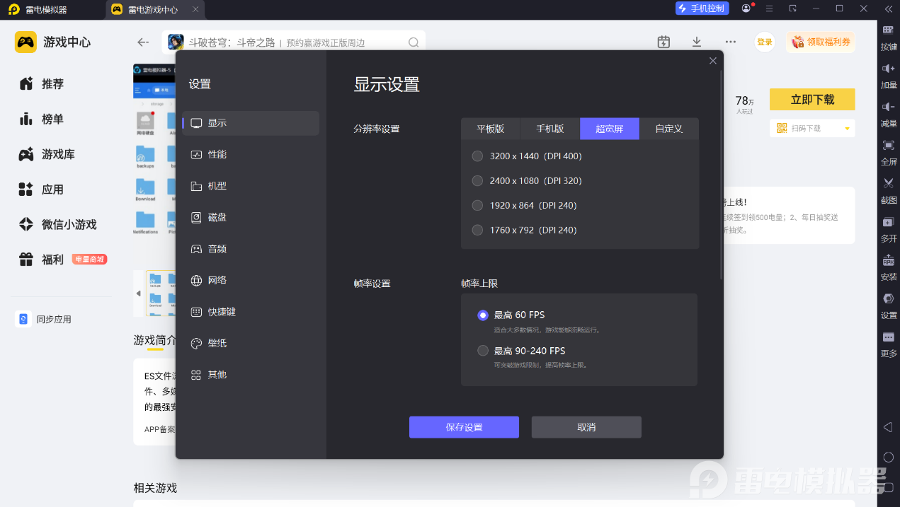 雷电模拟器的超宽屏显示模式,能为ES文件浏览器带来更舒适的视觉体验。运行工具时,超宽屏可完整展示文件目录与操作面板,避免界面元素遮挡视线,查看文件缩略图、核对存储数据时细节更清晰。开阔的显示视野能减少界面切换与滑动频次,长时间处理文件也不易产生视觉疲劳,整体操作更连贯。
