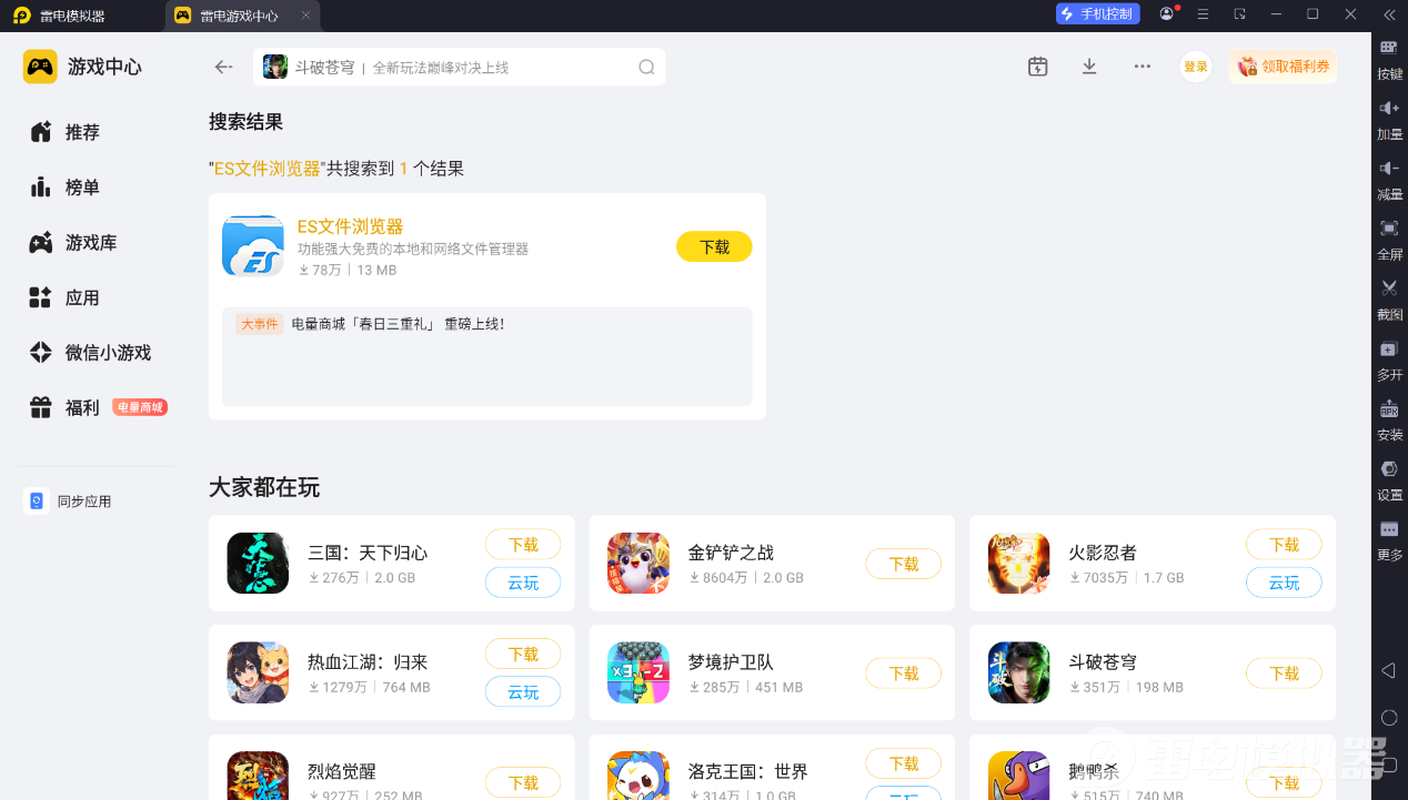 用户可先访问雷电模拟器官方网站,下载对应电脑系统的安装包,按提示完成安装流程。启动模拟器后,打开内置游戏中心,搜索ES文件浏览器并完成安装,即可在电脑端正常使用相关功能,安装步骤简洁,新手也能快速完成操作。