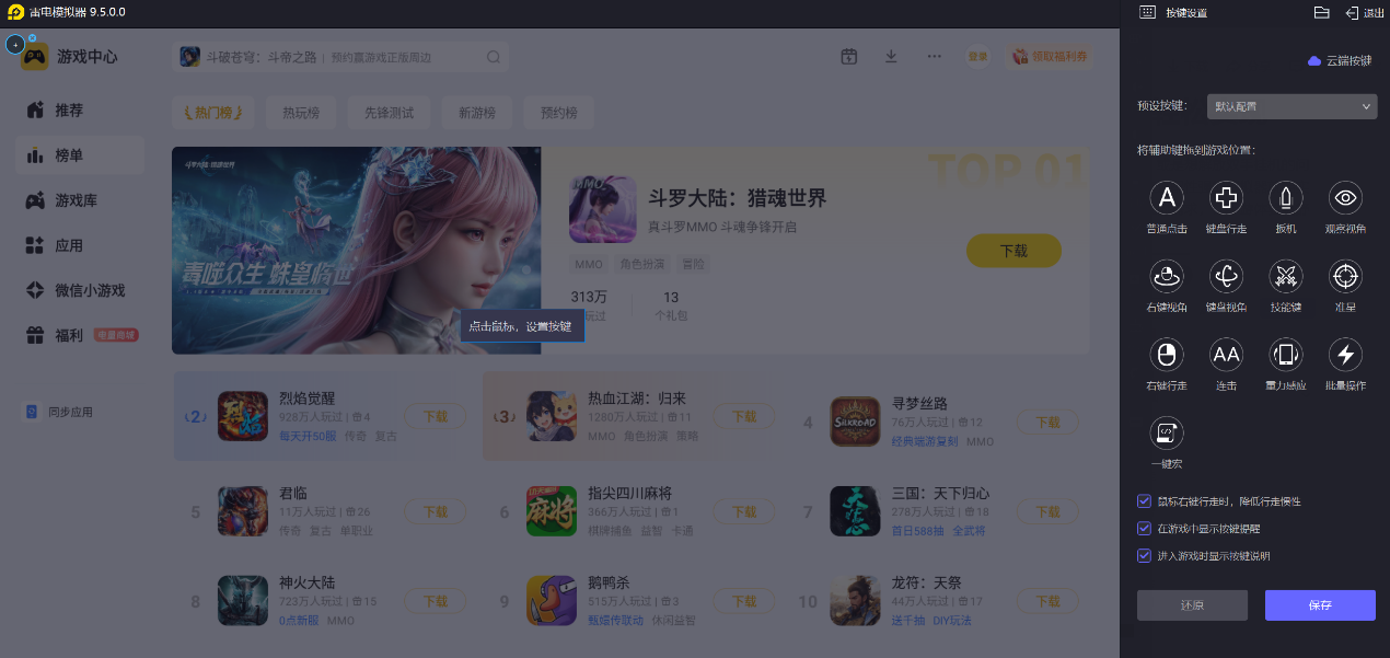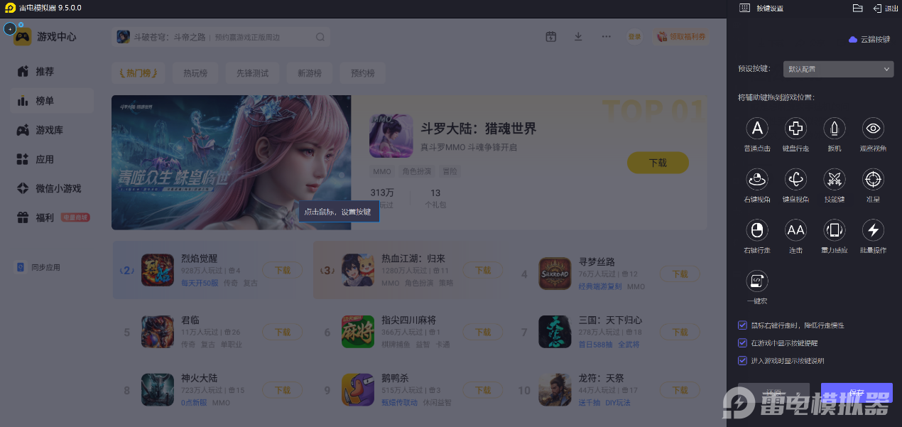 用手机玩手游时,屏幕按键密集,很容易出现误触情况,尤其是在进行需要精准操作的场景时,误触往往会影响游玩体验。而雷电模拟器支持键鼠配合操作,能有效避免屏幕按键误触的问题,同时针对不同游戏进行适配,自带默认一键宏,可实现精准的操作指令,若觉得默认设置不合适,也能简单修改,适配自己的操作习惯。