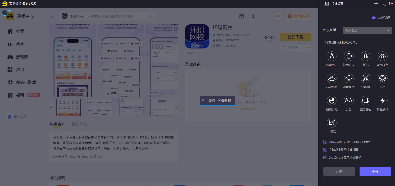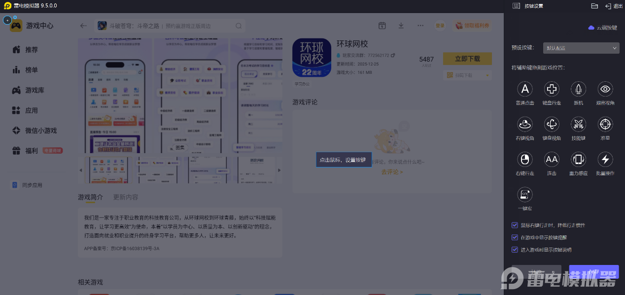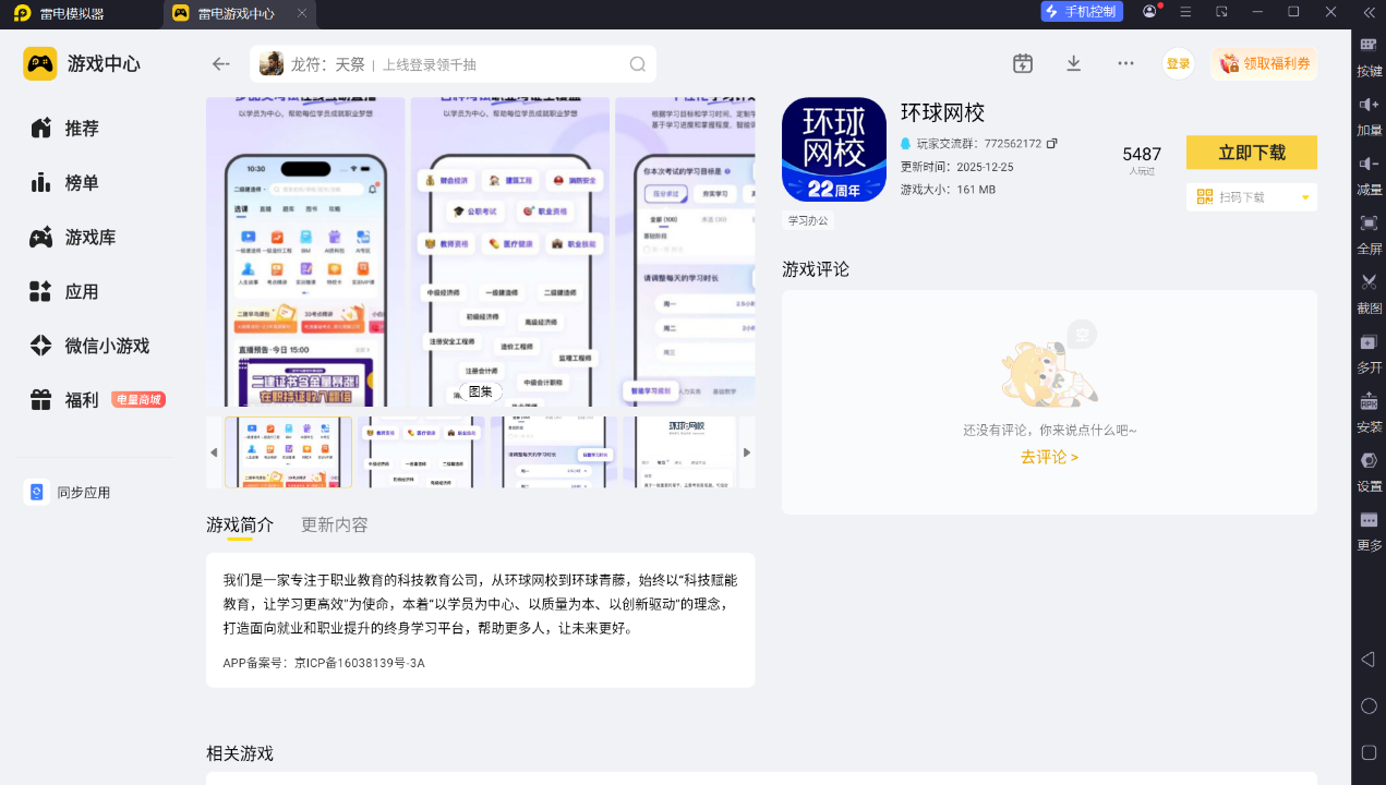 可打开浏览器访问雷电模拟器官网,下载正版安装包并进行安装,全程无捆绑程序,步骤简便易操作。启动模拟器后,进入内置的雷电游戏中心搜索环球网校,找到应用完成安装即可快速启动,无需复杂配置就能进入学习界面。