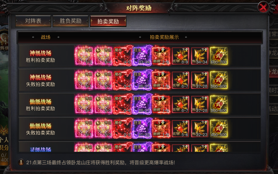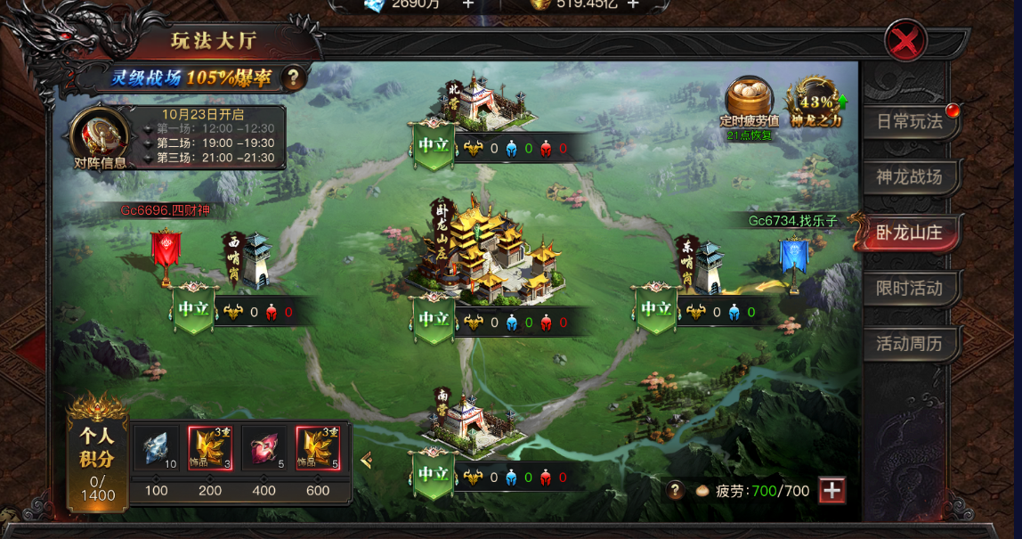 卧龙山庄的整体玩法,最重要的一场 ,就是晚上21点这一场,哪怕12点,19点这场两场输了都没关系,最重要就是21点这一场,赢了,就等于赢了。
