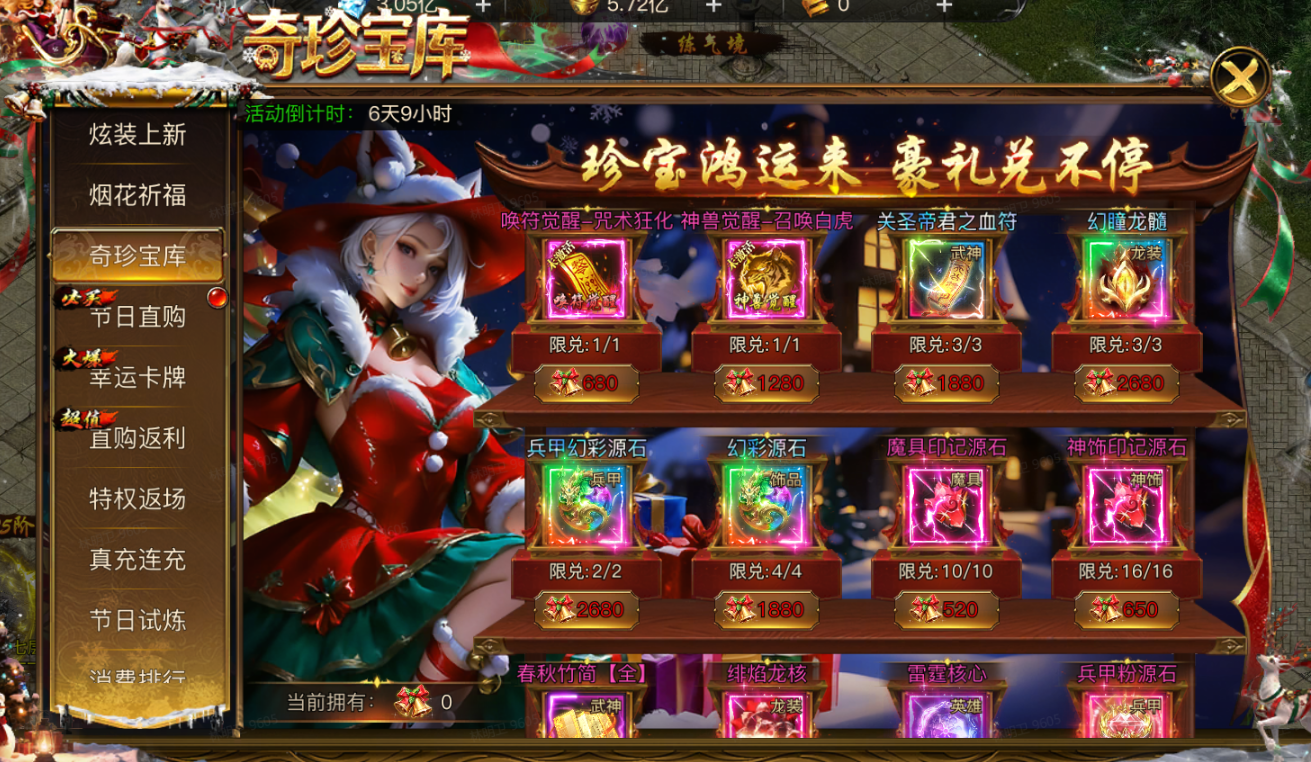 烟花祈福、节日豪礼可获取【奇珍宝印】,消耗奇珍宝印兑换道具