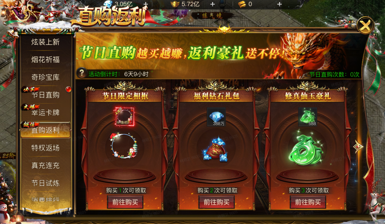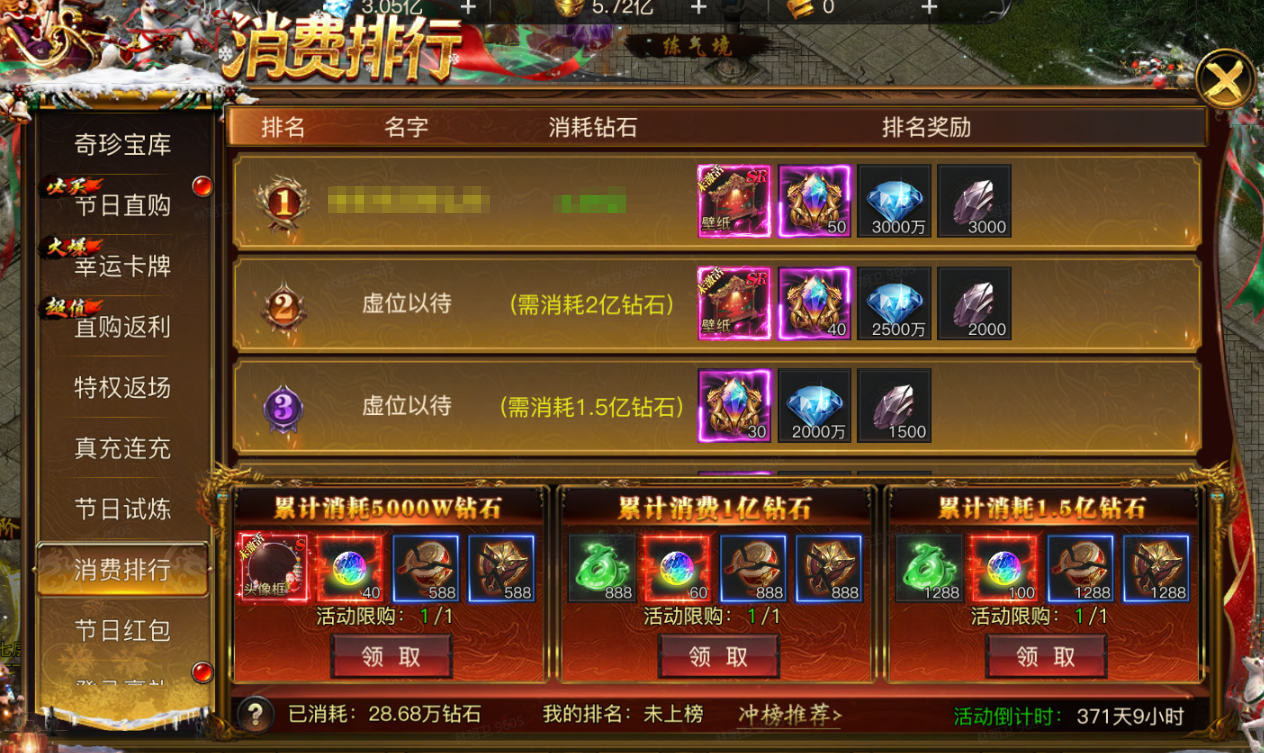 2)有3挡消耗达标礼包,活动期间内消耗钻石到指定数值可领取奖励。