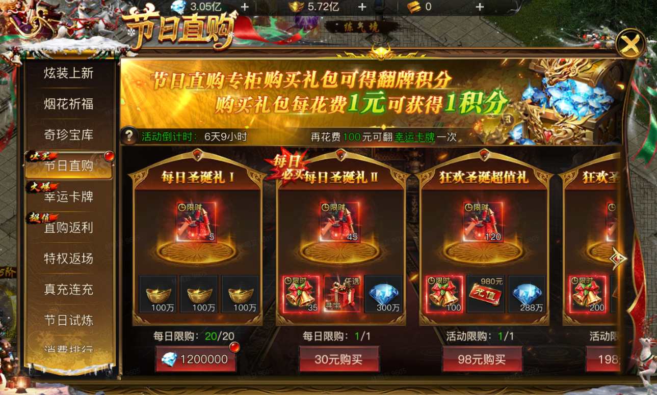 1)购买节日豪礼给到的积分,积分可用于本活动进行抽奖(直购1元=1积分)。