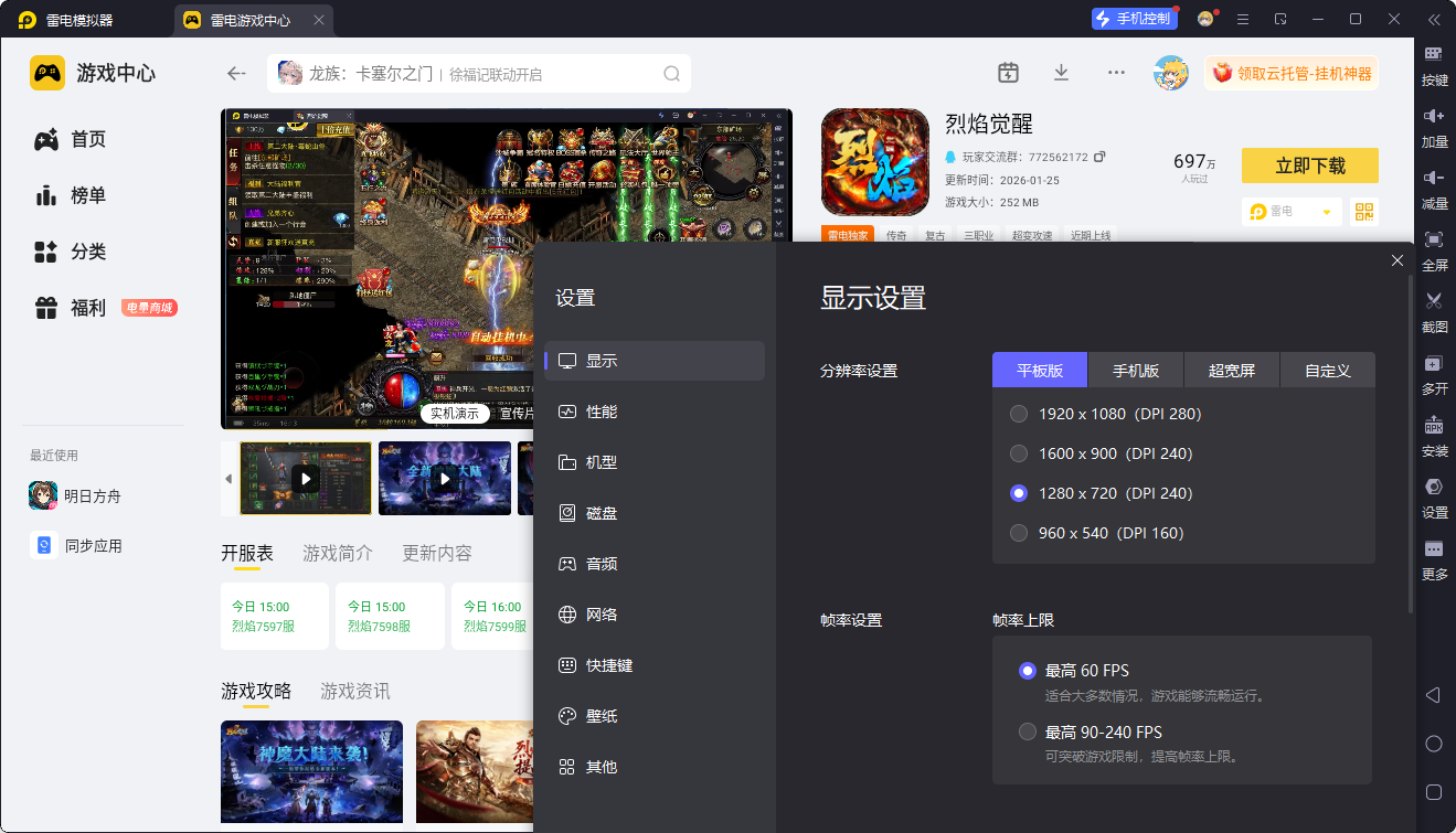 雷电模拟器拥有超强的性能表现。它能够深度适配电脑硬件,合理分配系统资源,让烈焰觉醒在电脑上运行得更加流畅。即使是在多人团战、技能特效满屏的场景下,也能保持稳定的帧率,不会出现卡顿、掉帧等问题。使用雷电模拟器运行烈焰觉醒,游戏加载速度比手机快30%以上,让玩家能够更快地进入游戏世界,享受战斗的乐趣。