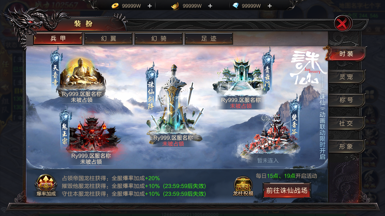雕像战场升级为"仙剑争夺"!青云门、鬼王宗、天音寺、焚香谷的门派阵眼,等你守护!成功守护、占领他服门派,可获得加成奖励!全服荣耀,共同见证!