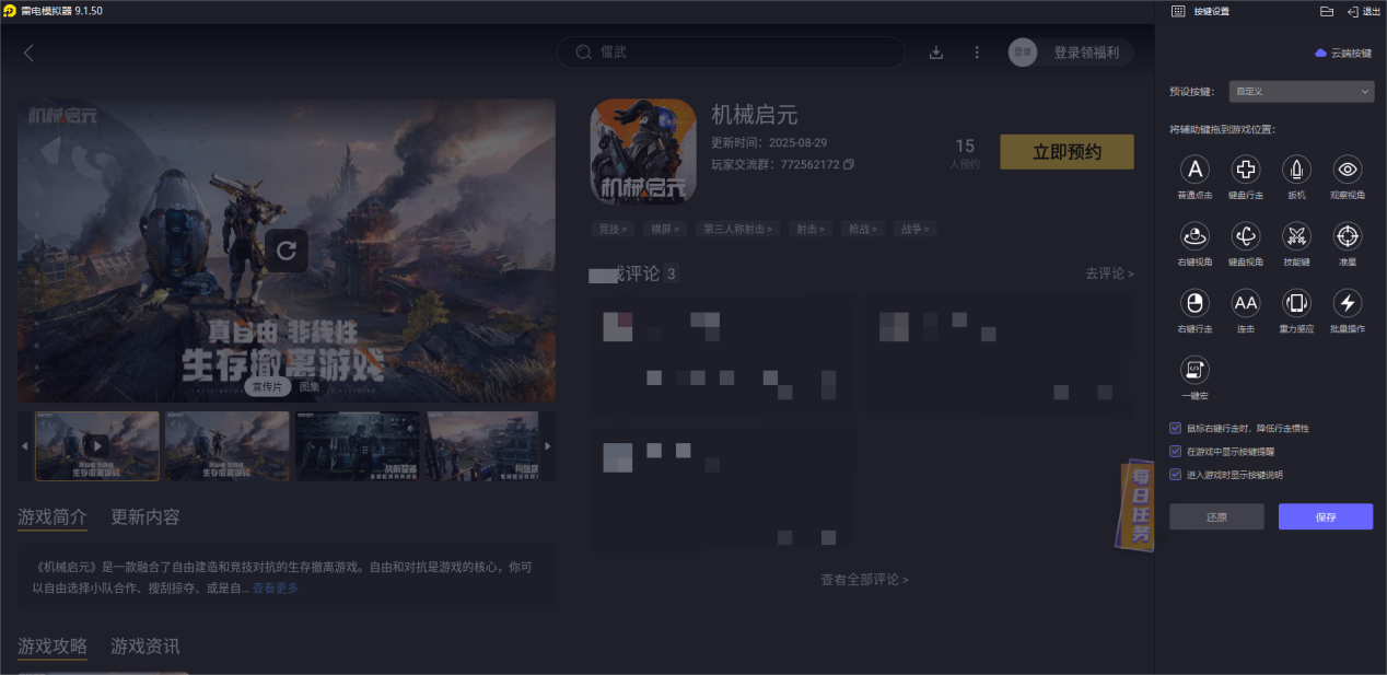 机械启元是英雄游戏出品,使用UE5引擎制作的真自由非线性生存撤离游戏,目前游戏已开启全平台的机械启元预约,各位玩家可千万不要错过机械启元预约。现在参与机械启元预约,后续可能还有机会参与测试招募。当然,我还是推荐到雷电模拟器上预约的。