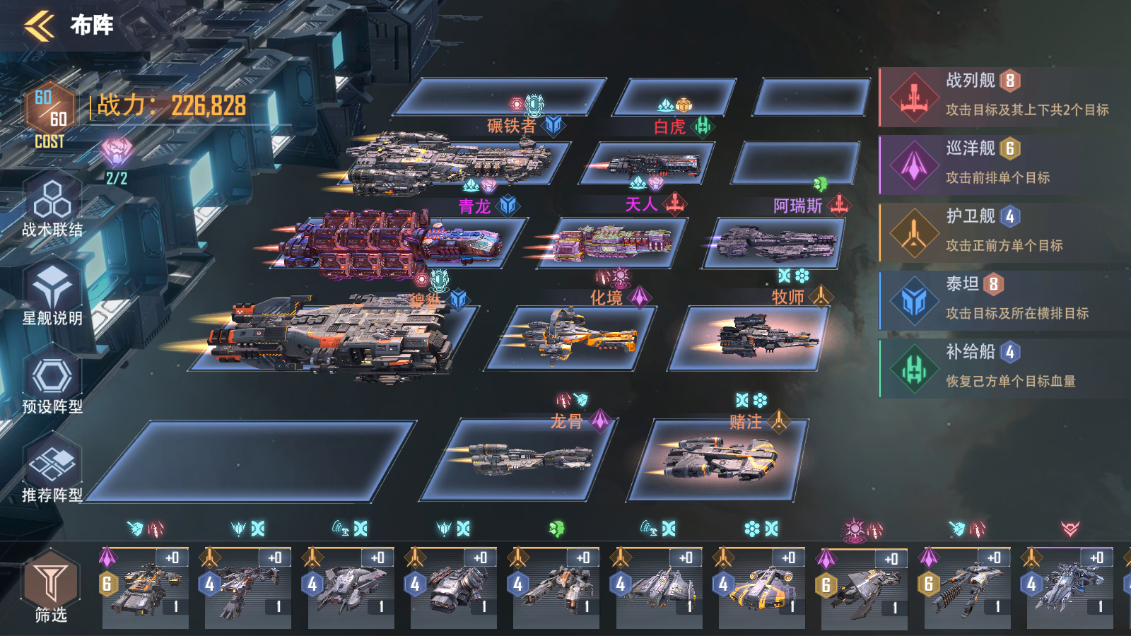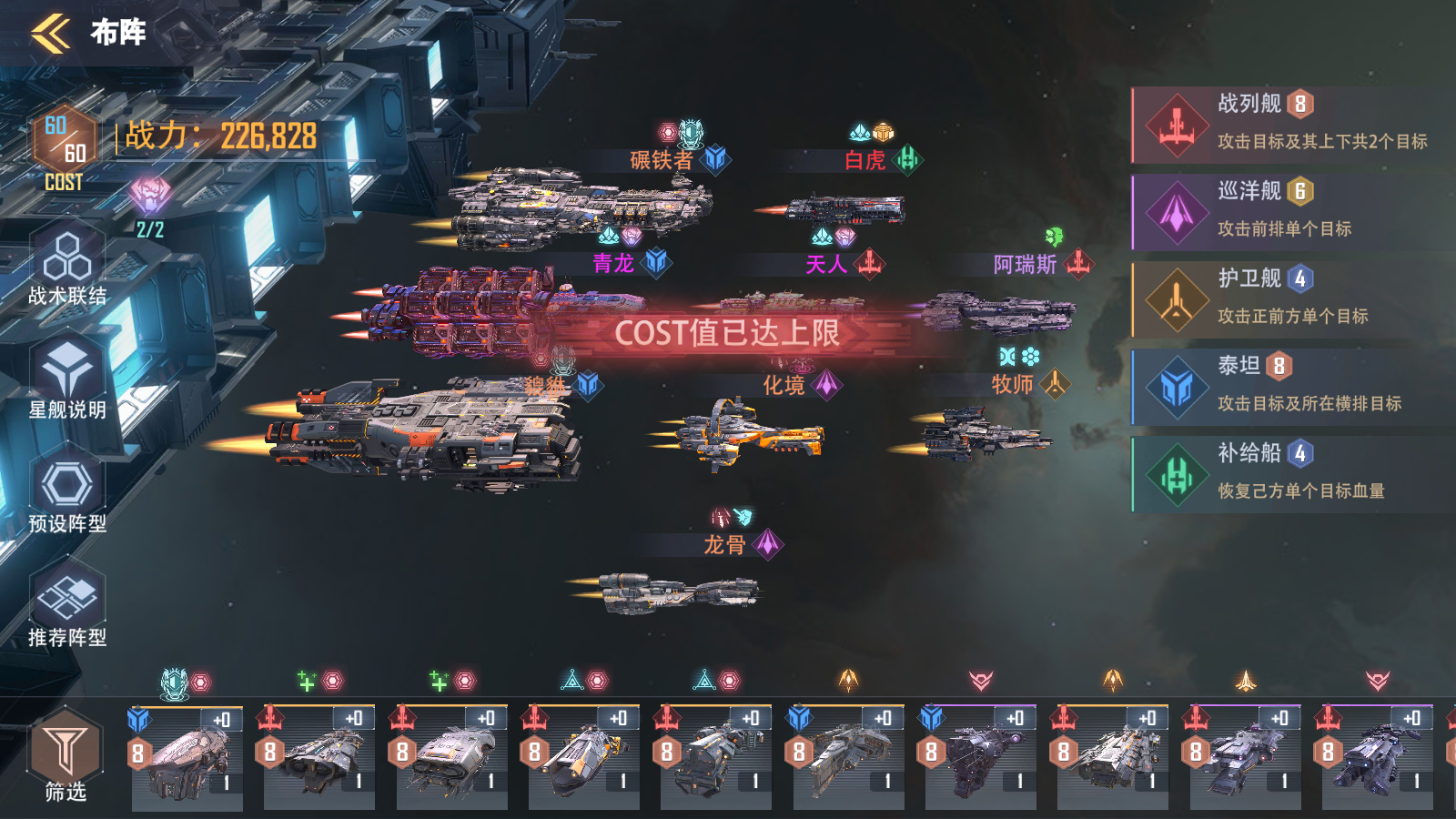 战舰的部署受到COST值的限制,总COST值不得超过60,这就要求指挥官们在战舰的选择上必须有所取舍,在质量与数量之间找到最佳平衡。