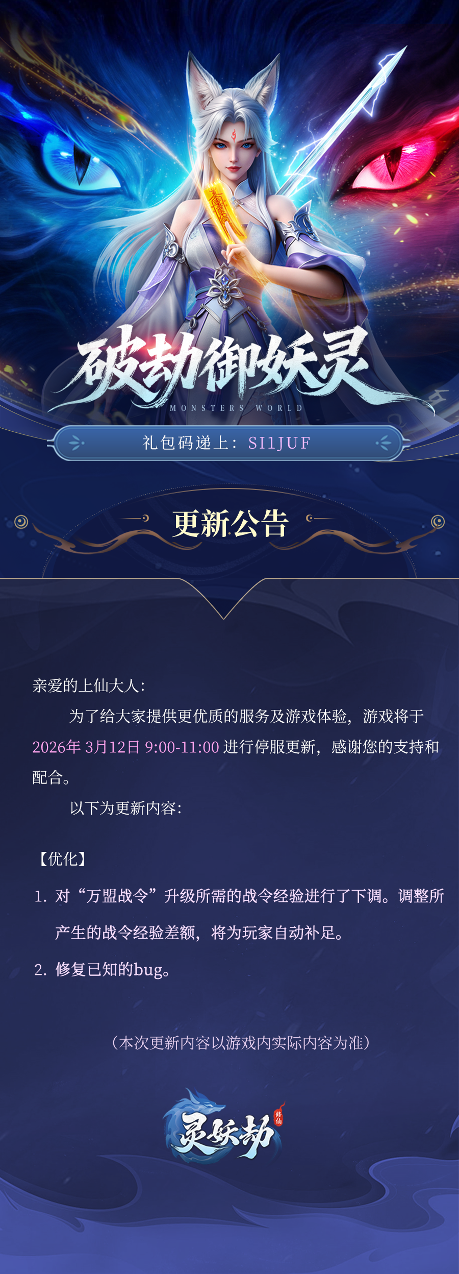仙途浩渺,万象更新。本周优化来袭!先向各位上仙递上礼包:SI1JUF,快来一起看看这周又有哪些新变化吧!