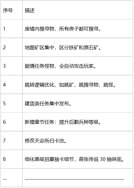 一测中大家提的各类建议我们已基本完成优化,同时为给玩家带来更好的体验,我们通过小规模玩家测试和内部自查,制定了下个版本共23项的优化建议,并争取在二测前完成版本优化。