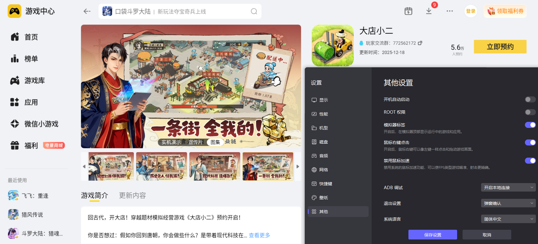 大店小二唐伯虎让古风经营多了几分风雅与趣味,专属剧情、派遣加成和隐藏奖励,让经营之路充满惊喜。搭配雷电模拟器,不管是解锁唐伯虎的完整剧情,还是借助他的加成快速扩张酒馆,都能更轻松、更沉浸,快来体验这份独特的经营乐趣吧!