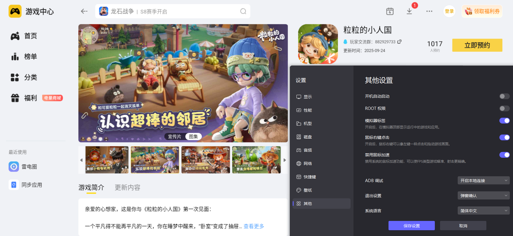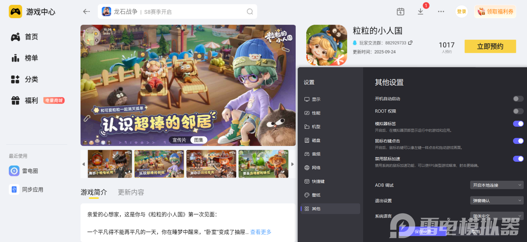 《粒粒的小人国》已于2025年9月24日开启全平台预约,目前还没公布确切的公测日期。不过结合游戏的开发节奏和测试安排来看,项目已进入深度优化阶段,预计会在2026年内正式上线。大家可以下载个雷电模拟器,里面会有游戏上线的最新消息。