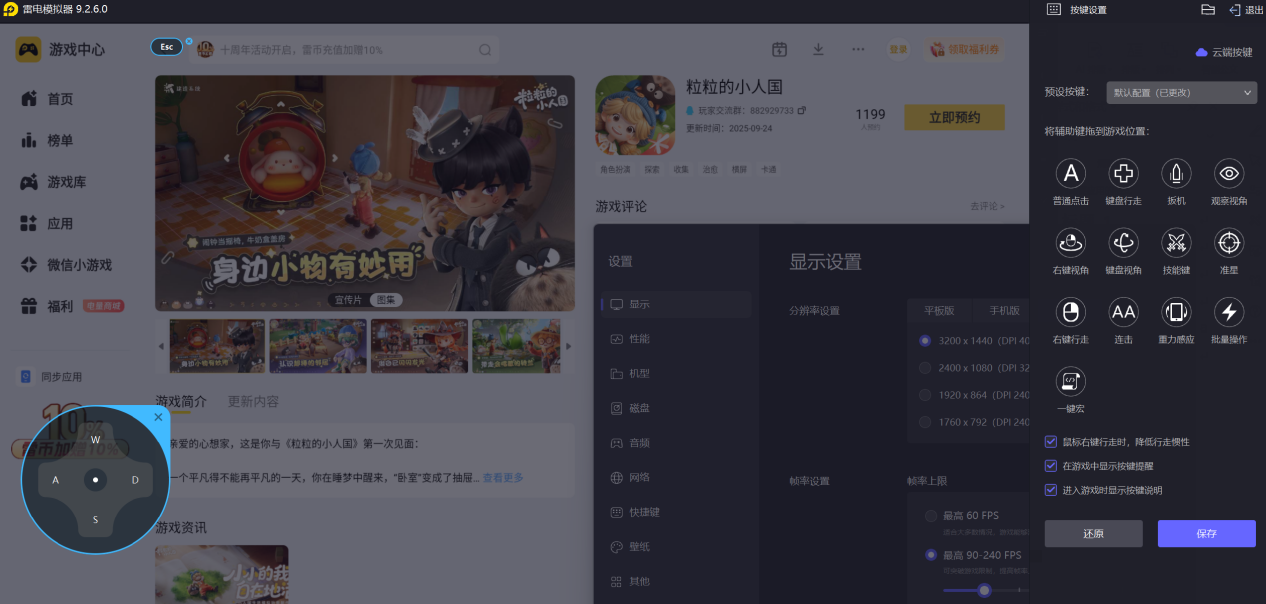 键鼠操作让家园建造更加得心应手。将移动、交互、使用缩小枪等操作自定义映射到键盘上,鼠标点击比手机触屏更精准,布置家具、收集资源时不易误触,长时间游玩也不会手指疲劳。在暗星深井挑战中,精准的鼠标控制能帮助你更好地闪避和收集星星,轻松完成情绪探索。