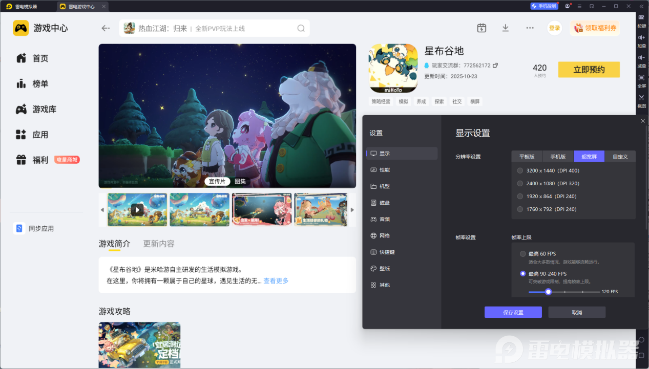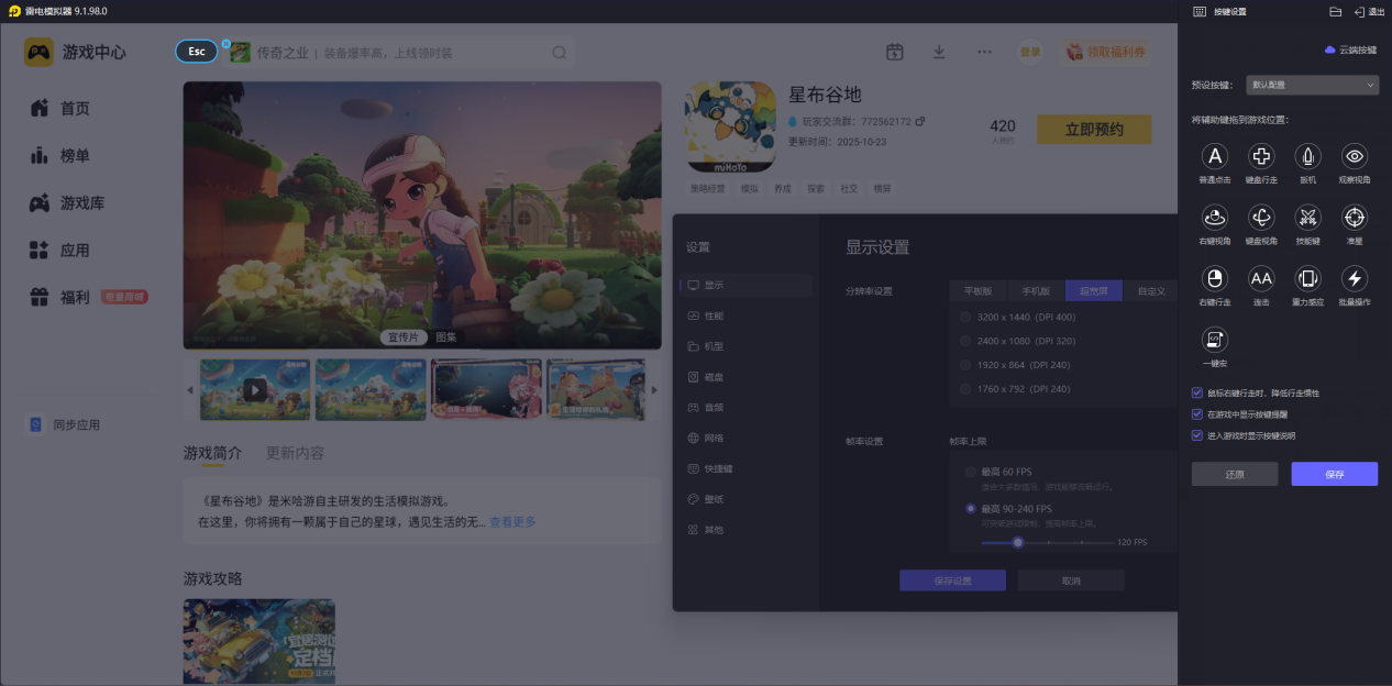 大屏适配拉满且操作顺滑,想无卡顿体验星布谷地全玩法,推荐使用雷电模拟器游玩。