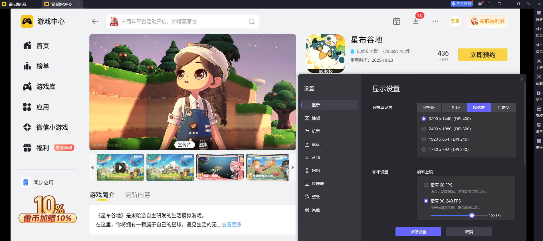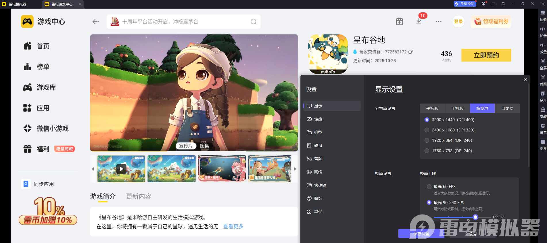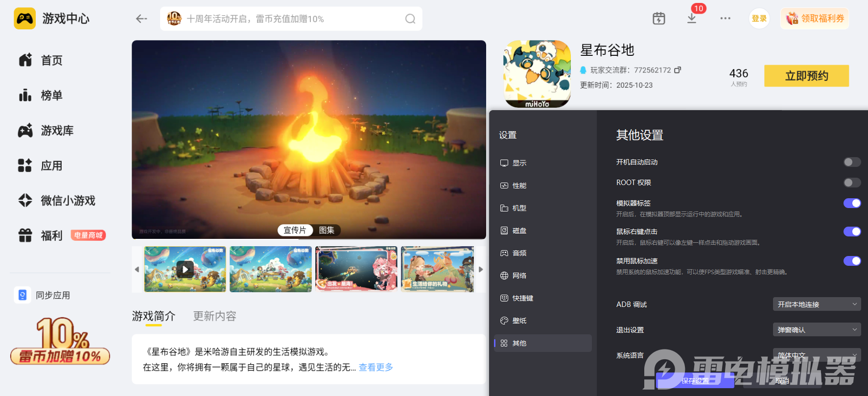 二、雷电模拟器玩《星布谷地》的优势